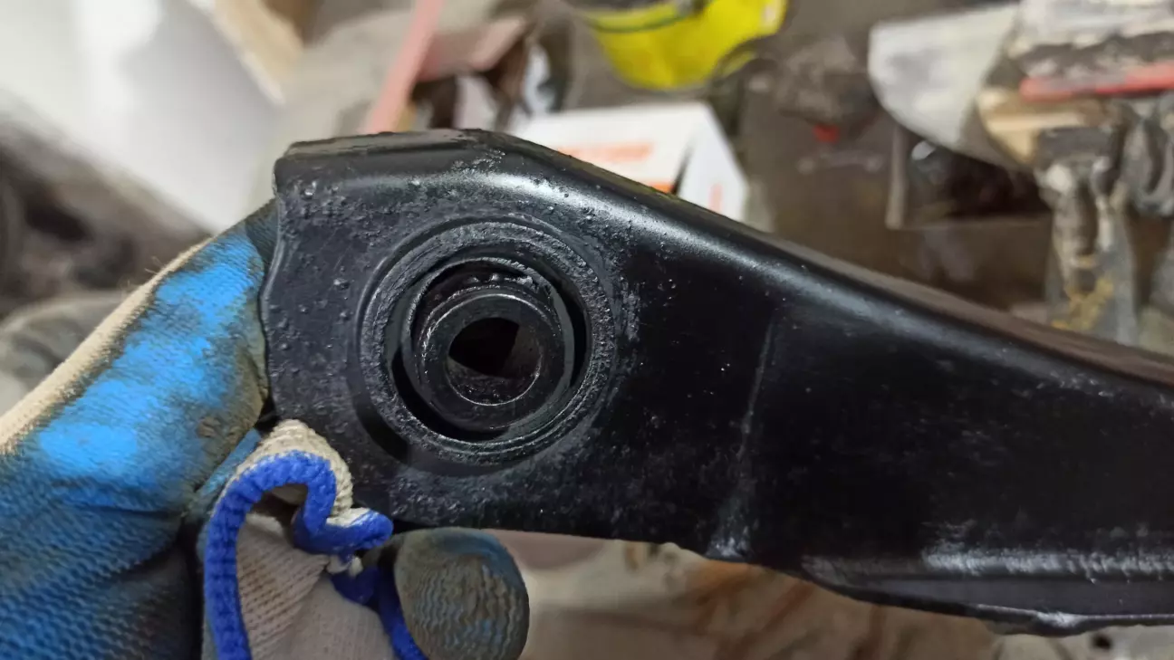 І ще в нижніх ричагах один сайлент (довший) випресовується тільки в одну сторону,так як він з однієї сторони має більший діаметр.