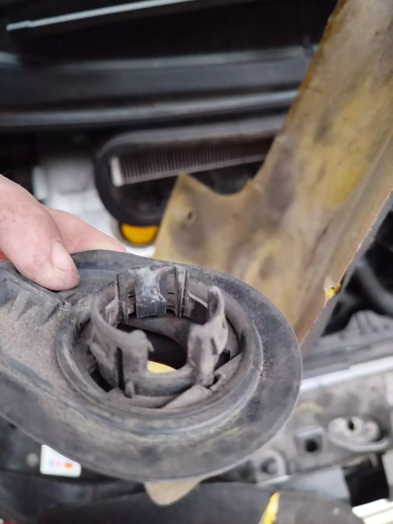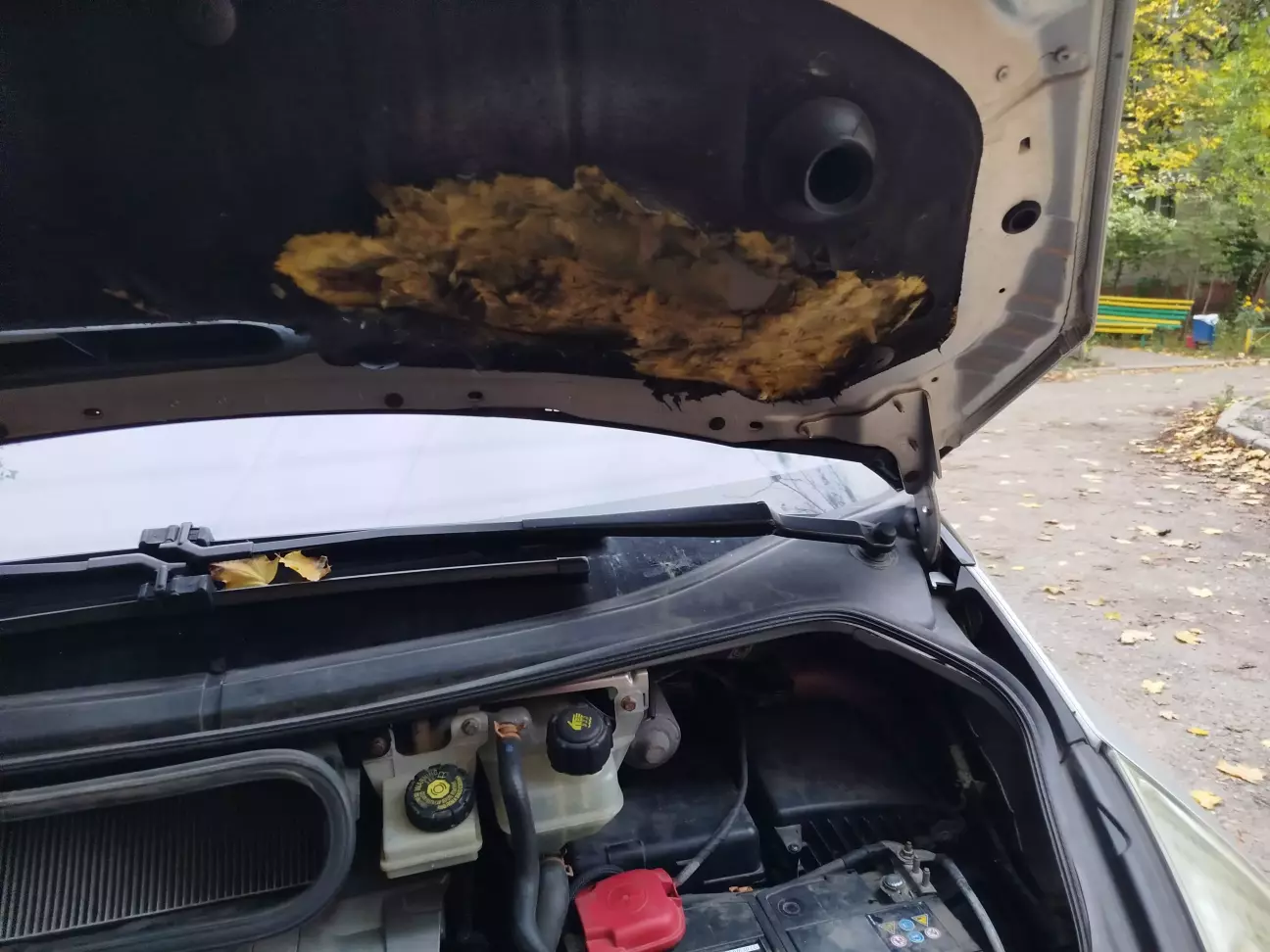 Жовтий утеплювач. З часом він почав муляти око, в головне була розгадана таємниця його появи: під час заміни ламп у фарах та опори двигуна була розібрана частина підкапотки та знайдено кілька горіхів та кубло з утеплювача на ланжероні , по ходу поки машина стояла перед продажем в ній поселилася якась 🐿️білка , яка стала собі гніздо, ну нічого страшного, головне що не 🦫 курва-бобер в мене не побудовано плотину під капотом .
