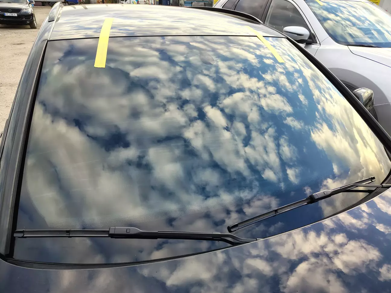 Родное стекло стояло Securit, установленно было стекло Pilkington с датчиками естественно, стекло триплекс, имеет самый высокий класс, ну и плюс тонер сходу в 35.