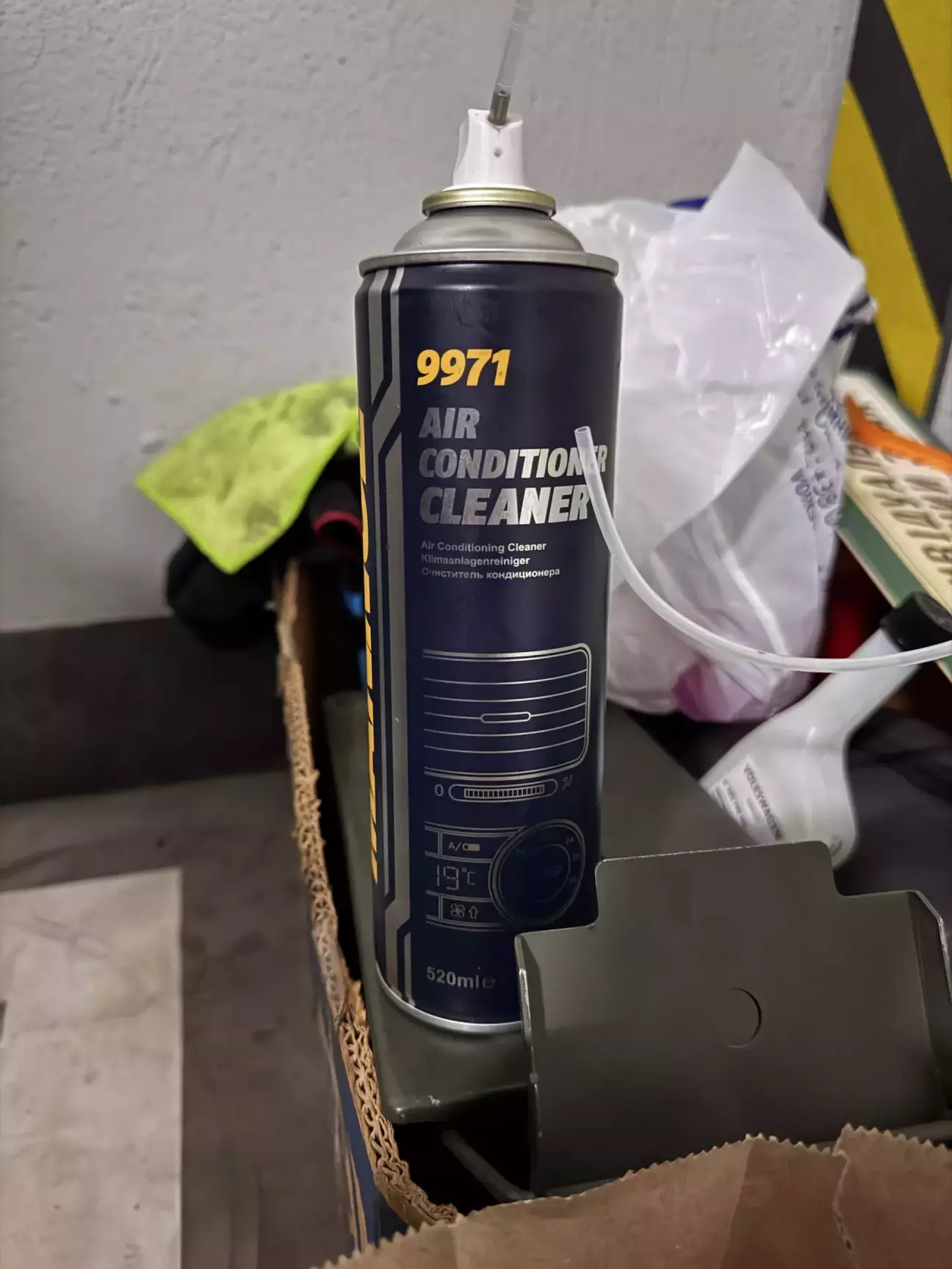Купив Mannol 9971 AIR CONDITIONER CLEANER. Зняв вентилятор, ну і туди на випарбвач насипав від душі піни. Да й так що назад полізла :). Але використав лише 70% балону. Скажіть чи можна у сьомому гольфі у воздуходуви пінити? Без фанатизму звісно, що б змило весь пил.
