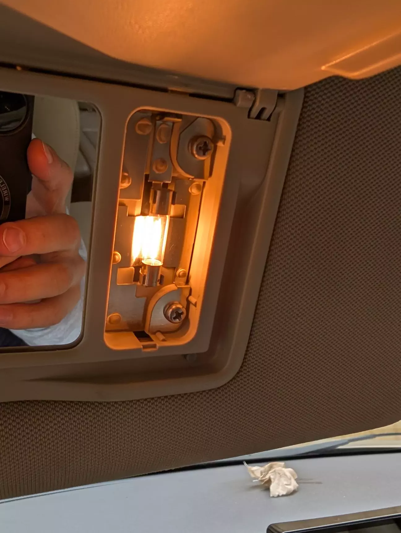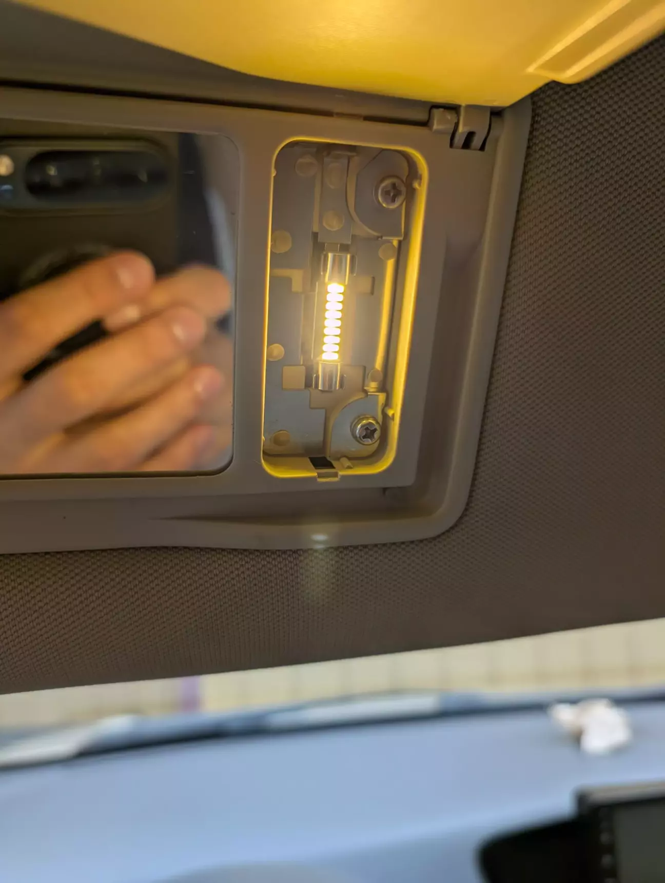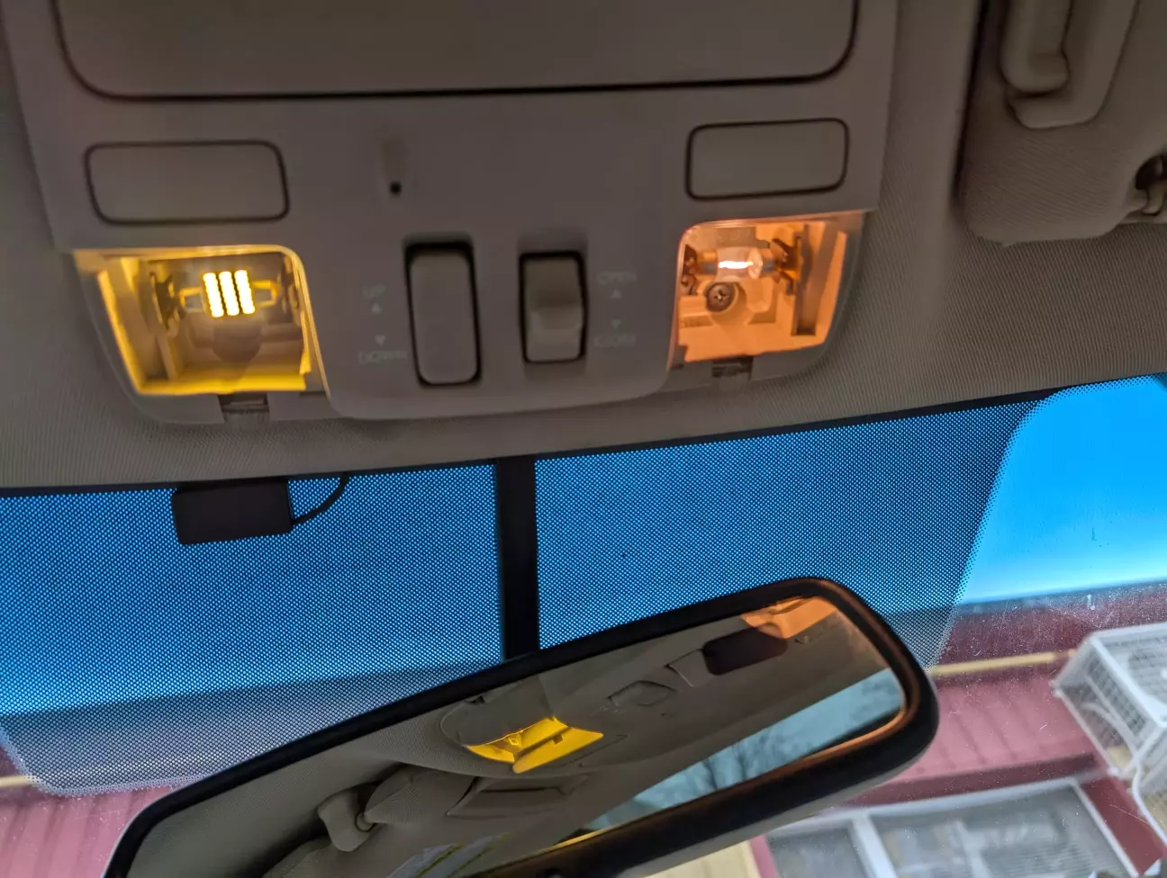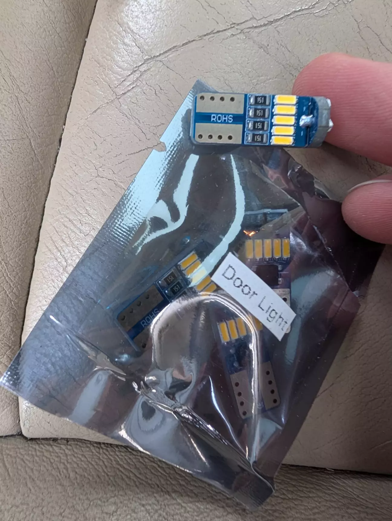 Замінив світлодіоди в козирьках, в лампах над водієм і пасажиром, в центральній, в задній і в лампі багажника. Ще є в підсвітку номера, але там в мене вже було поміняно, тому залишив до кращих часів. А от в двері вони не підійшли, теж відкрив спор на Аліку, хочу часткову компенсацію. сподіваюсь, що все вийде. І треба буде десь докупити ті діоди. Брав, доречі, жовті діоди, теплі, а не білі, вдень не помітив значної різниці з старими лампами, а от вночі - це зовсім інша справа, світять гарно і приємно.