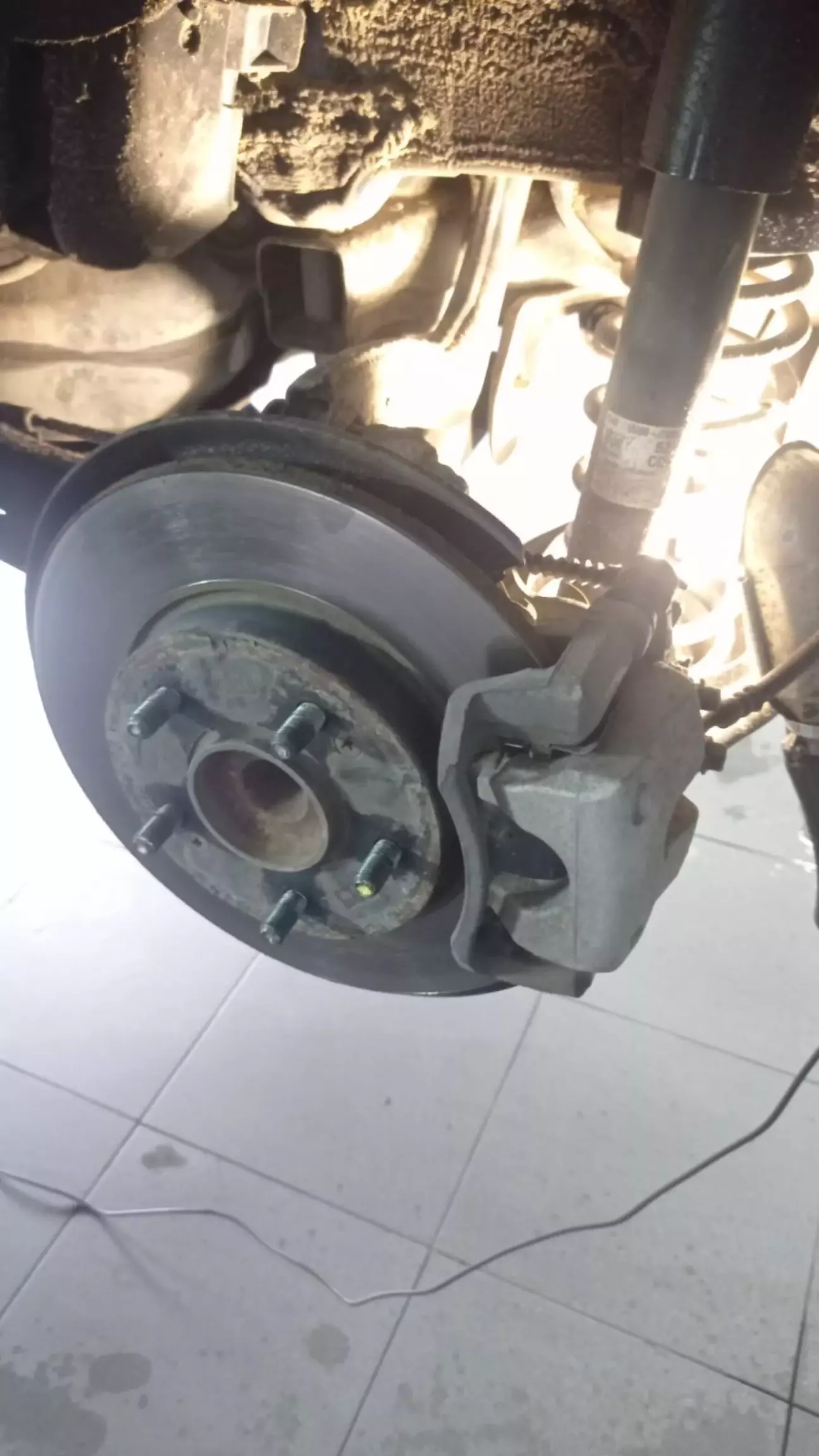 Невеликі труднощі виникли під час заміни задніх колодок — заважало кріплення стоянкового гальма, але майстер зі всім впорався. Обслуговують направляючі, ставлять нові колодки.