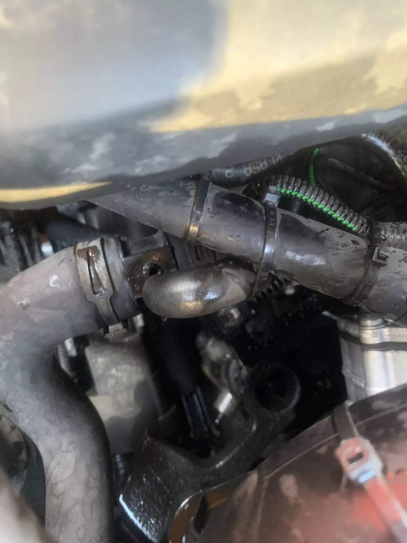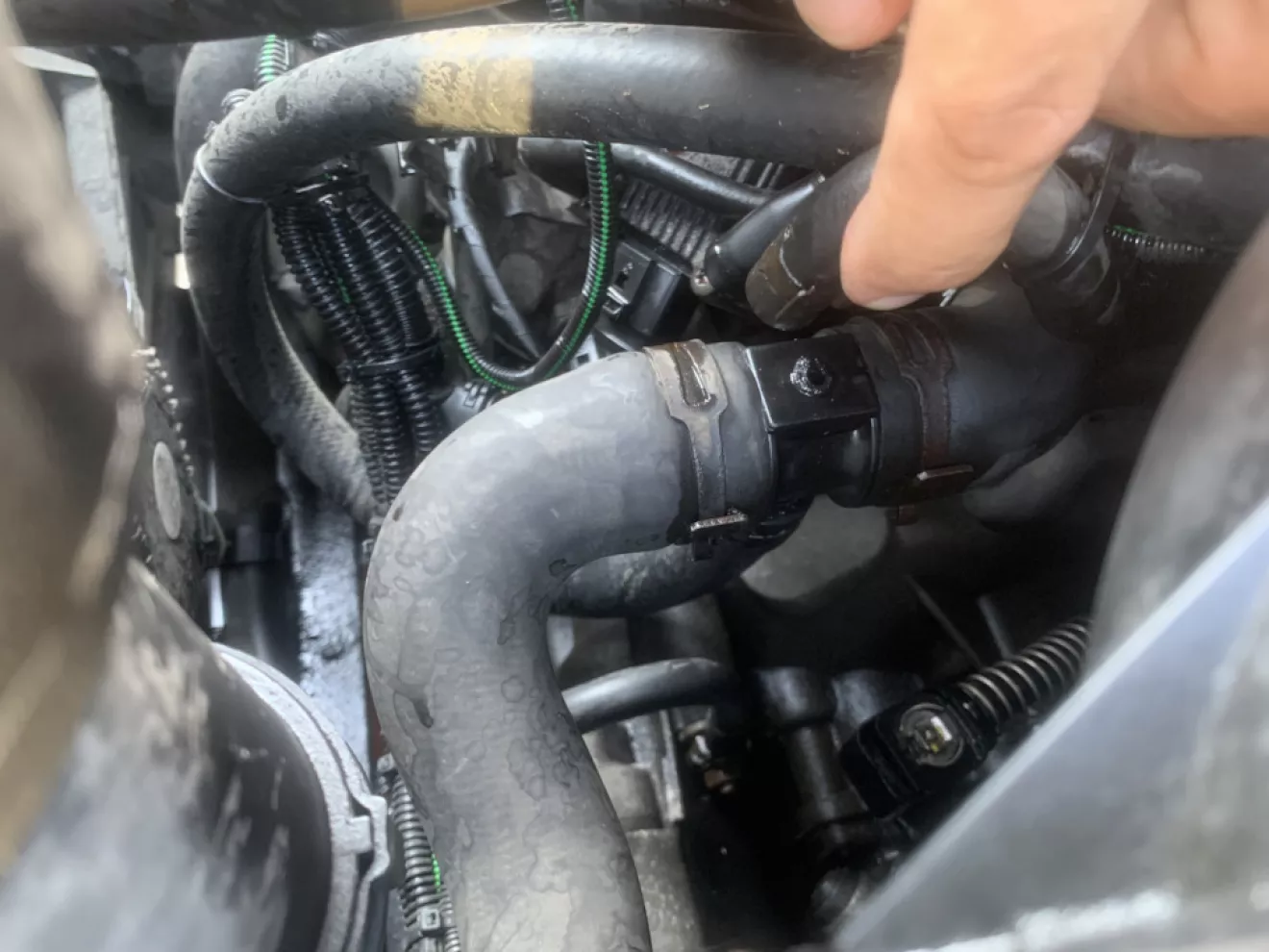 Вот такая беда случилась по пути домой. Заморгала лампочка низкого уровня антифриза. Остановился, долил еще, а он мне сразу под ноги вылился, нашел, в чем беда, к счастью внизу на улице оказалось СТО. Скатился туда и на следующий день забрал машину. Пришлось залить нового антифриза, хоть год назад свежий заливал. И, как бонус, покатался на городской электричке.