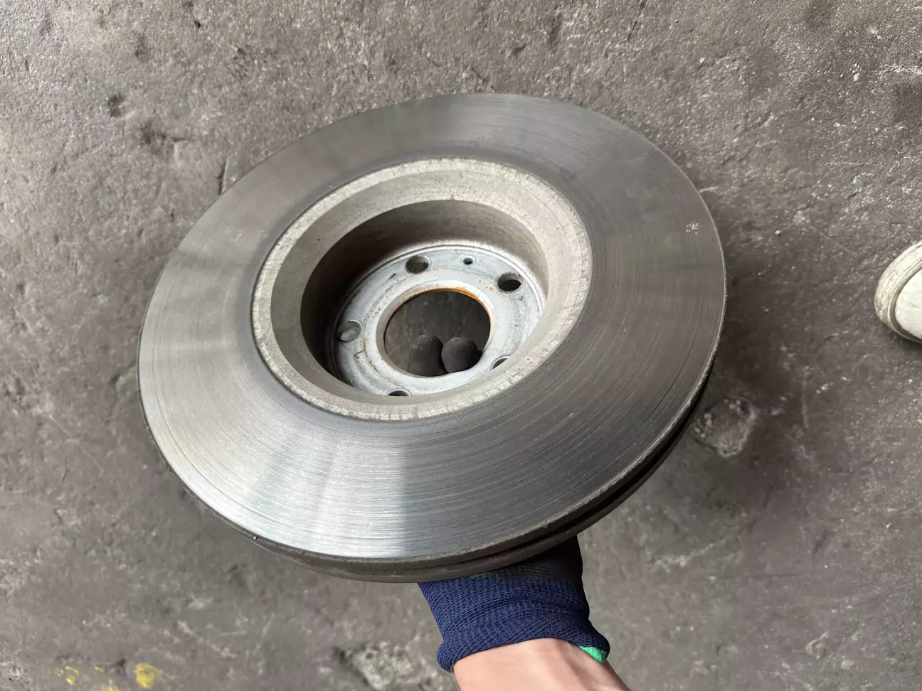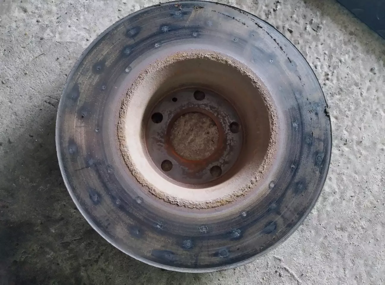 Після дощів і простою по 2 тижні знов відчуваю що є биття при гальмуванні. Я в недорозумінні як так, комлект дисків відносно свіжий. Перевіряю на авто індикатором - всюди 0.02-0.05мм що є нормою. Підозра падає на задні диски, бо на лівому зробилася така дивна риска, як би камінчик попав. Знімаю і везу перевіряти на станок де точать диски. Там міряєм і все в нормі. Привожу передні диски - і відразу на правому видно з 10-15 соток.