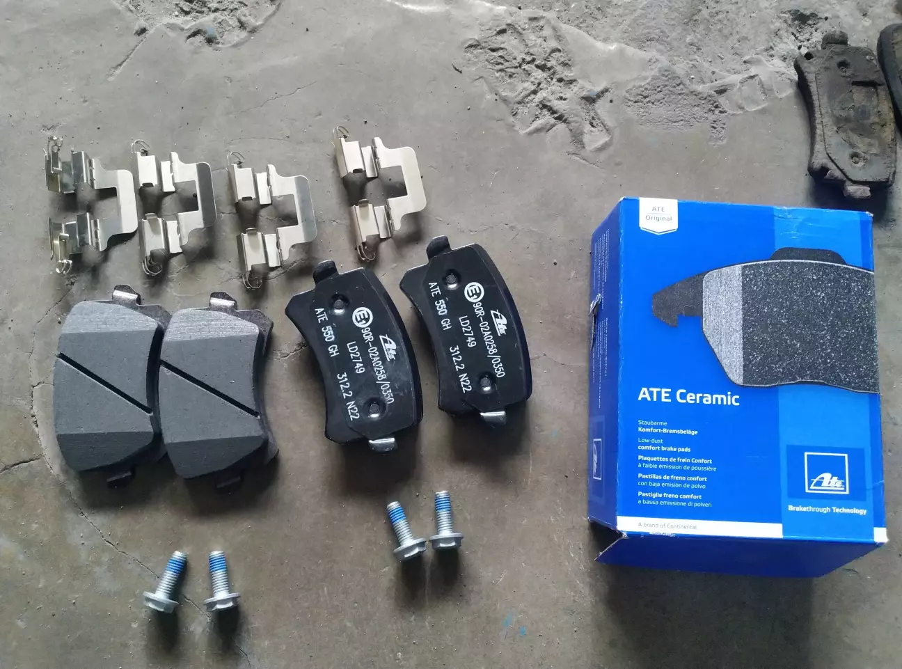Купив комплект колодок на перед і зад. Вирішив спробувати АТЕ керамік - вони більш м'якші і менше пилять. Добре пасують до спокійної їзди і ніяк не пасують до агресивної.