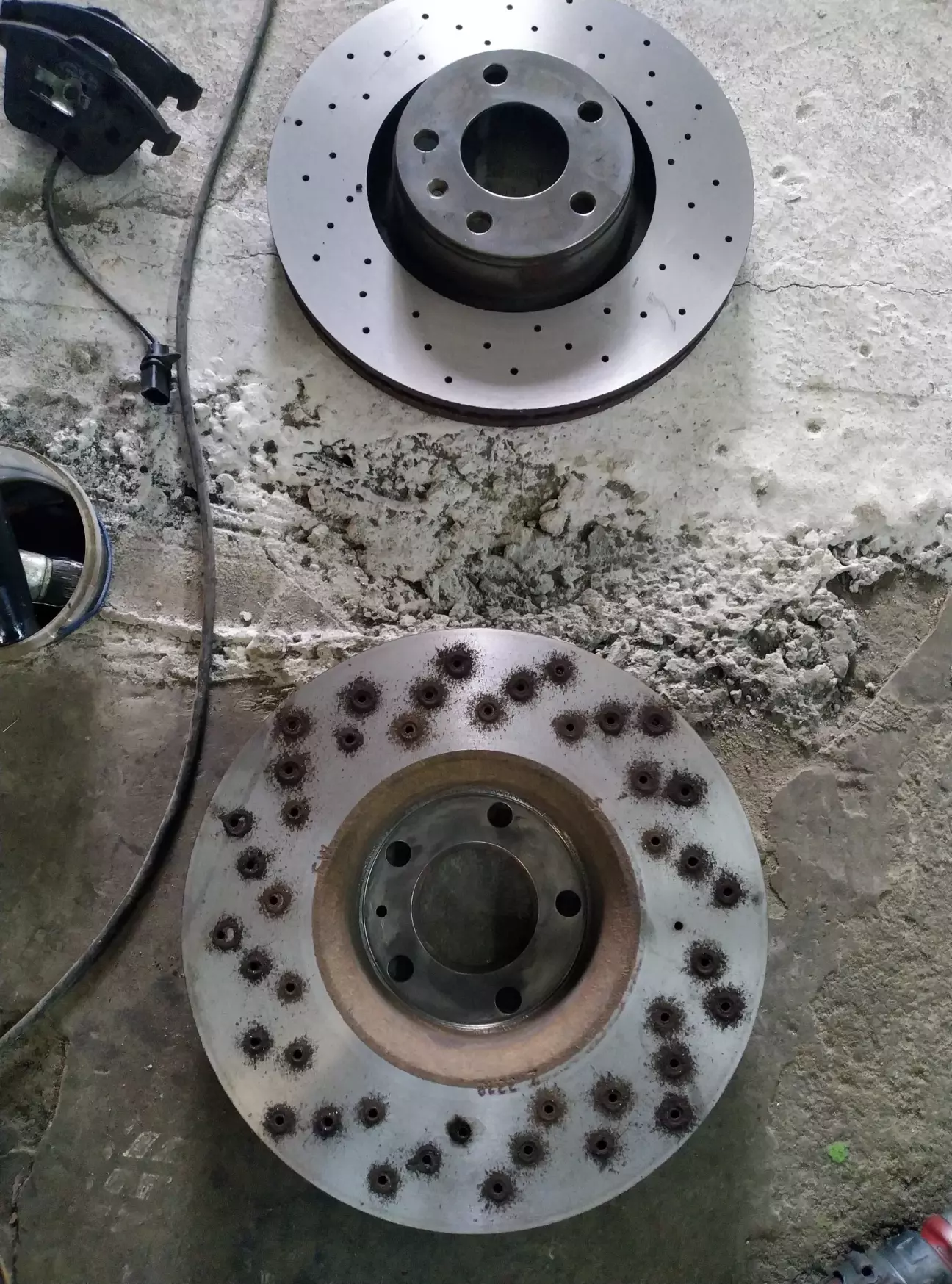 плюс на передніх дисках був невеличкий буртик і я дав їх на проточку - 40$(сам всім не рекомендую, а сам повівся на це). Після проточки ще пройшовся сверлом по отворах перфорації.