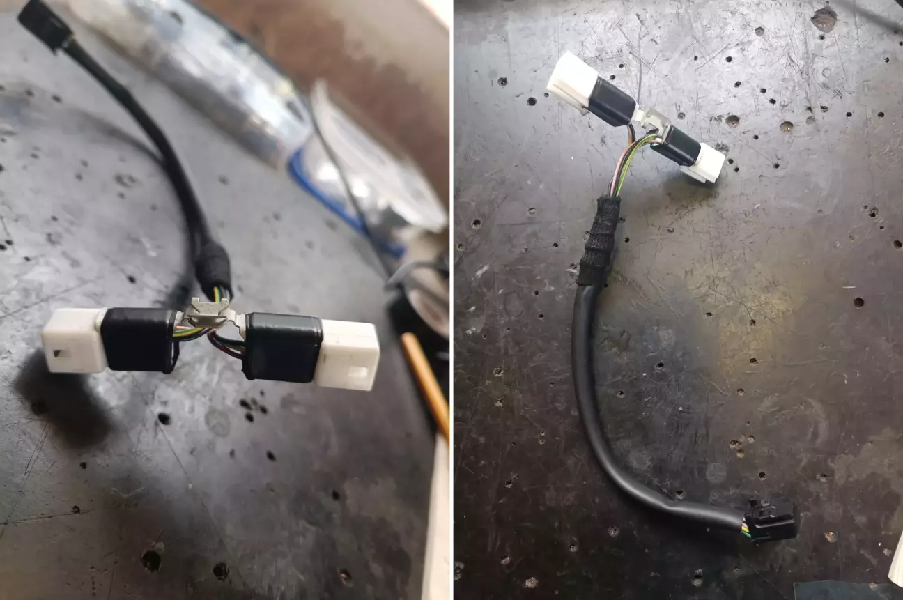 Тож я вирішив піти по аналогії Кіа та під'єднати дзеркало через перехідну проводку, додатково розділивши контакти на дві групи - окремо три проводи живлення і окремо чотири проводи на камеру, вивівши їх на окремі роз'єми. Так дзеркало запрацює одразу, а камеру під'єдаю згодом. Зробив таку перехідну проводку.