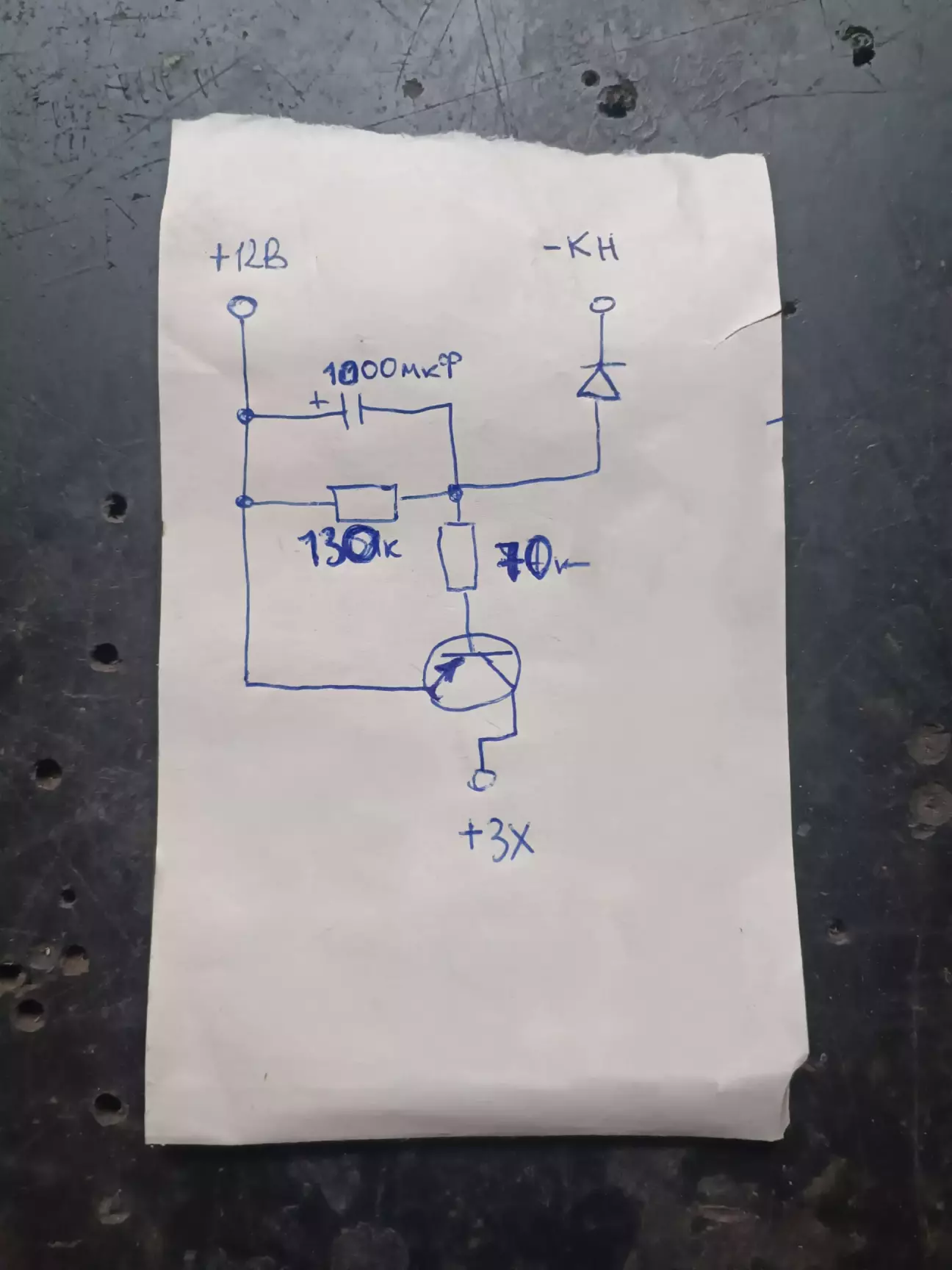 Достатньо одного натиснення на кнопку і схема подає живлення пару хвилин, доки розрядиться конденсатор. Таку схемку я зпаяв навісний монтажем і вона одразу запрацювала.