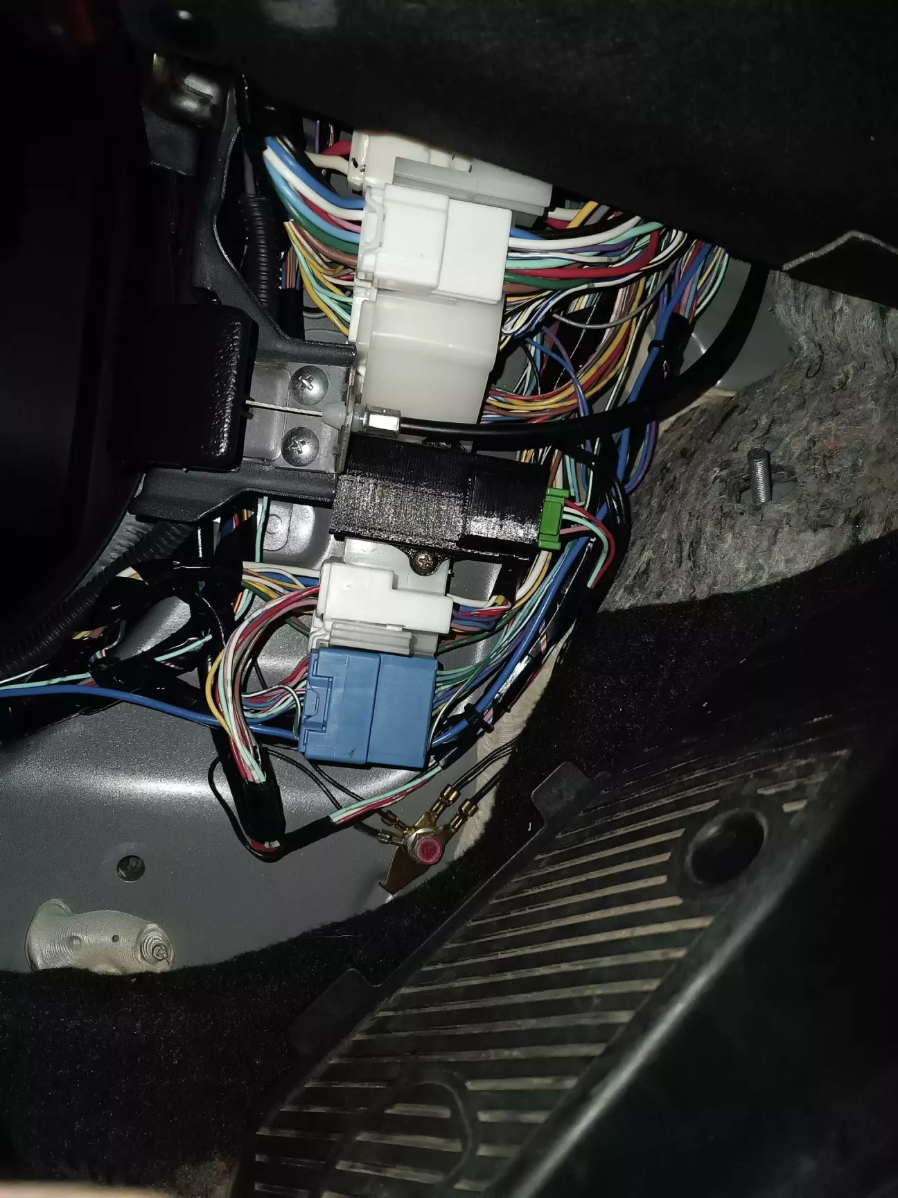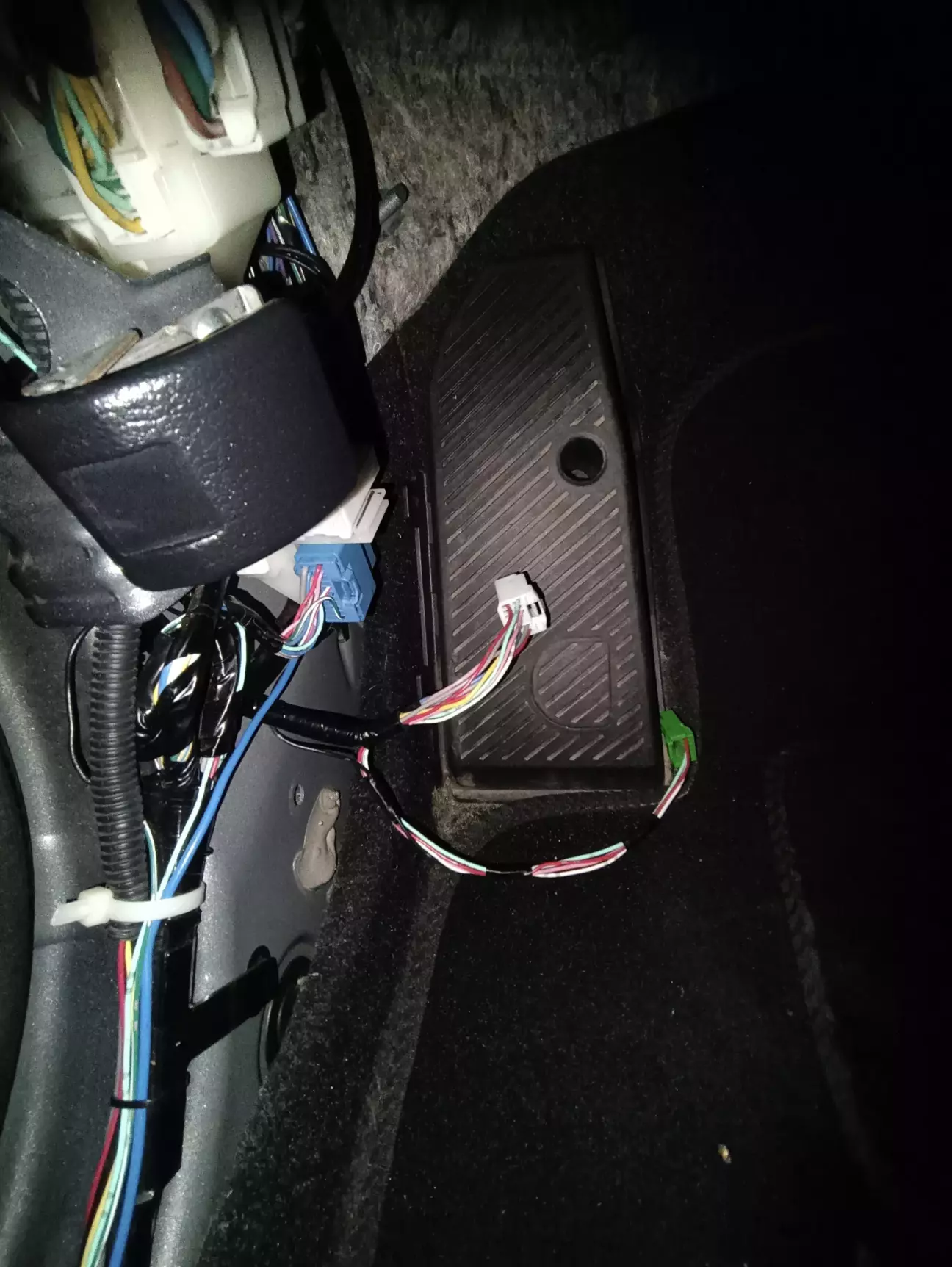 В моторному відсіку прокладав проводи вздовж штатного підкапотного жгута електропроводки. Але накосячив з довжиною - вистачило лише на пів шляху.