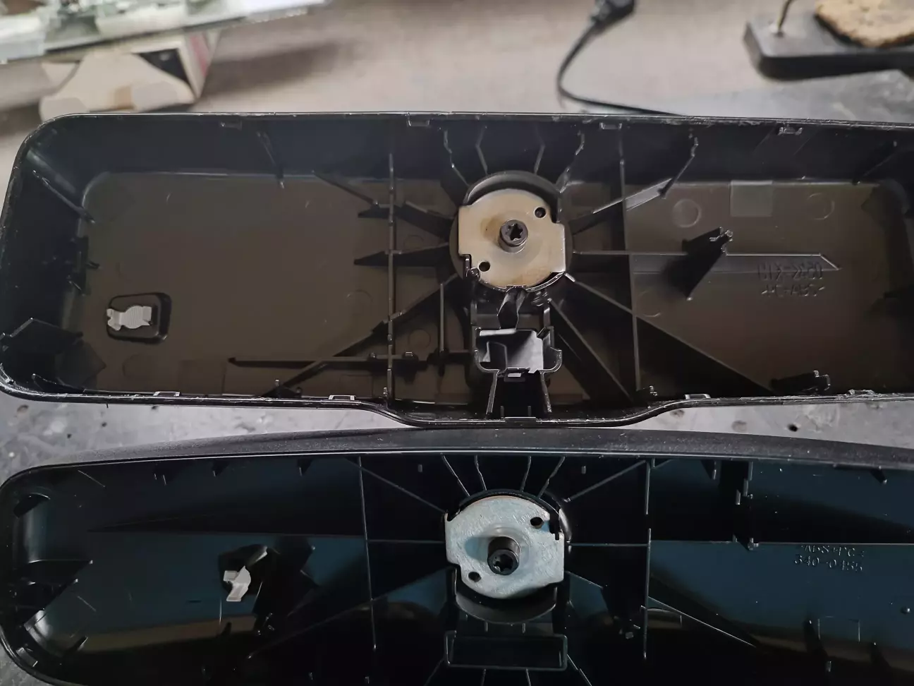 Якось одним сонячним літнім днем (чи весняним, вже не пам'ятаю точно) мені раптово схотілося трішки переробити чи покращити раніше встановлену інтимну підсвітку в дзеркалі заднього виду. Все йшло чудово, доки одним невірним рухом я не загандонив дзеркало. Фоток немає, бо не до того було. Причина також невідома, мабуть криві руки. Крім думки "Нащо я туди поліз?" нічого в голову не приходило. Але мені то не вперше. Пошкріб по закутках в гаражі та й знайшов Кіашне дзеркало, теж з системою автозатемнення.