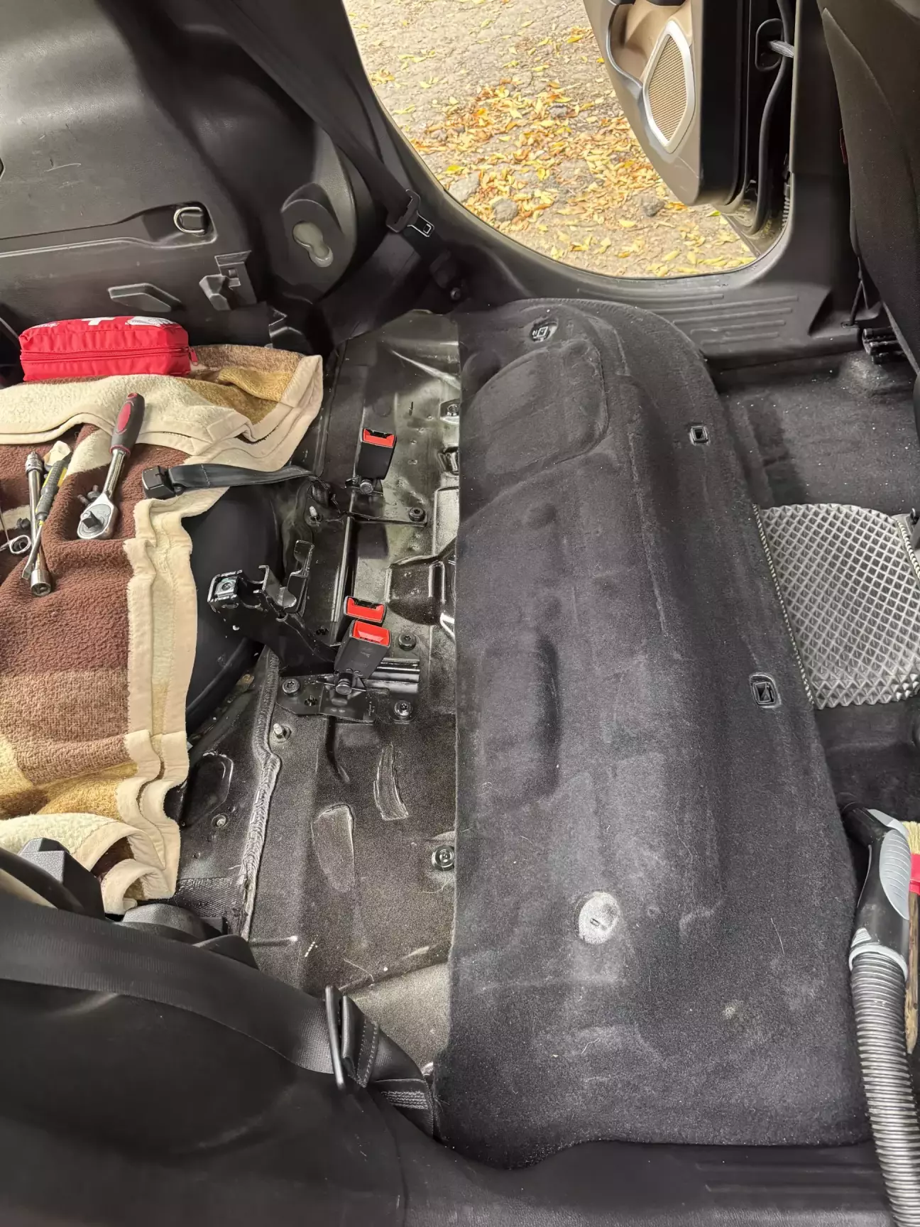 Дальше надо что то решать с дверными картами и заодно зашить дырку через которую видео багажник при опущенном подлокотнике.