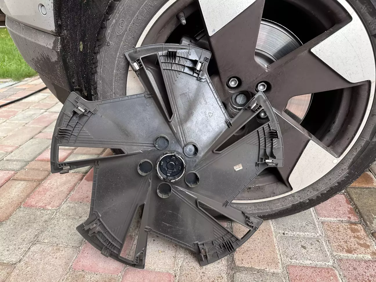 Пластикові накладки на колесах зняв вдома сам, щоб випадково не зламали.