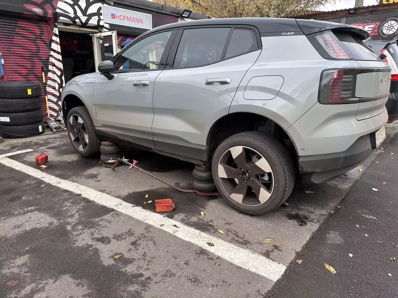Оскільки на Volvo у мене один комплект дисків, то довелось їхати на шиномонтаж поки ажіотаж ще не великий) Ну і авто важке і з дуже великим ходом підвіски, то самостійно міняти колеса і так було б не дуже просто. Зимові шини дістались від попереднього власника, практично нові - Bridgestone Blizzak 6 245/45 R19