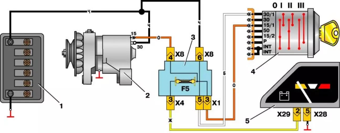 По заводу на наших машинах схема зарядки виглядає наступним чином: