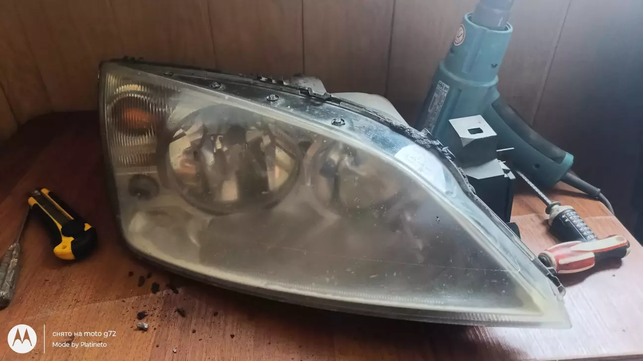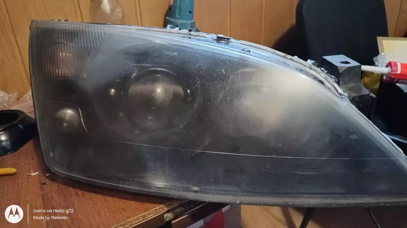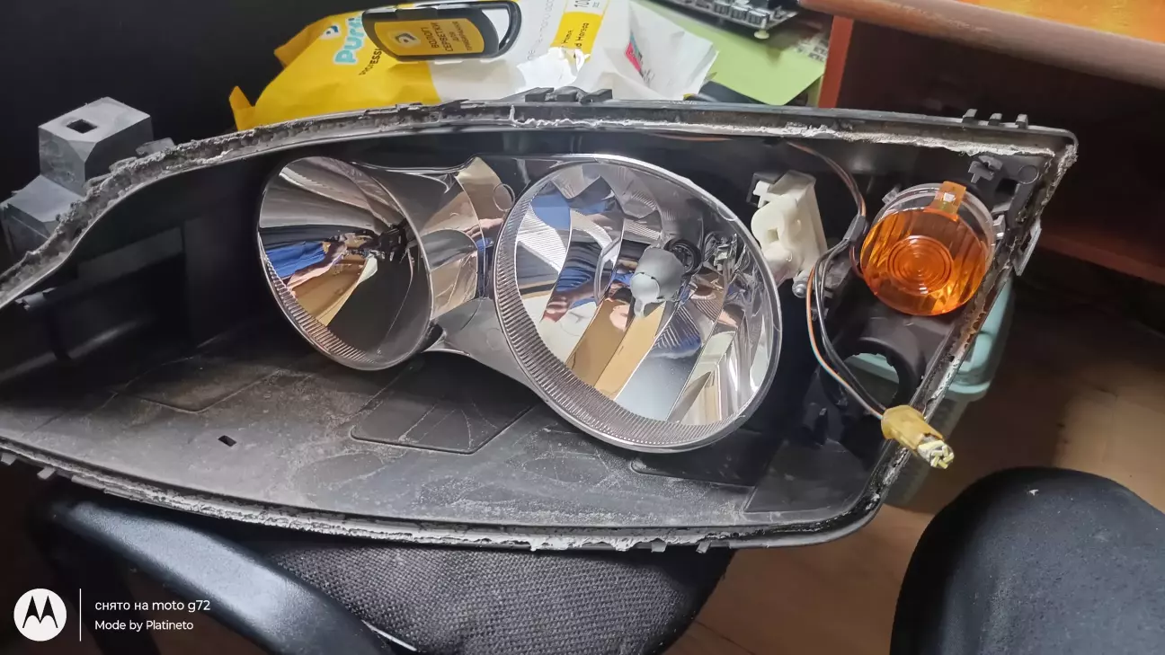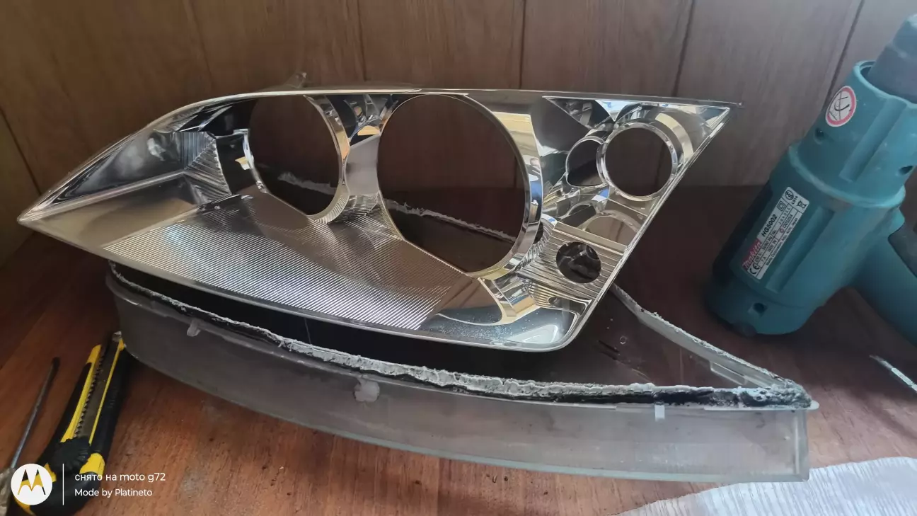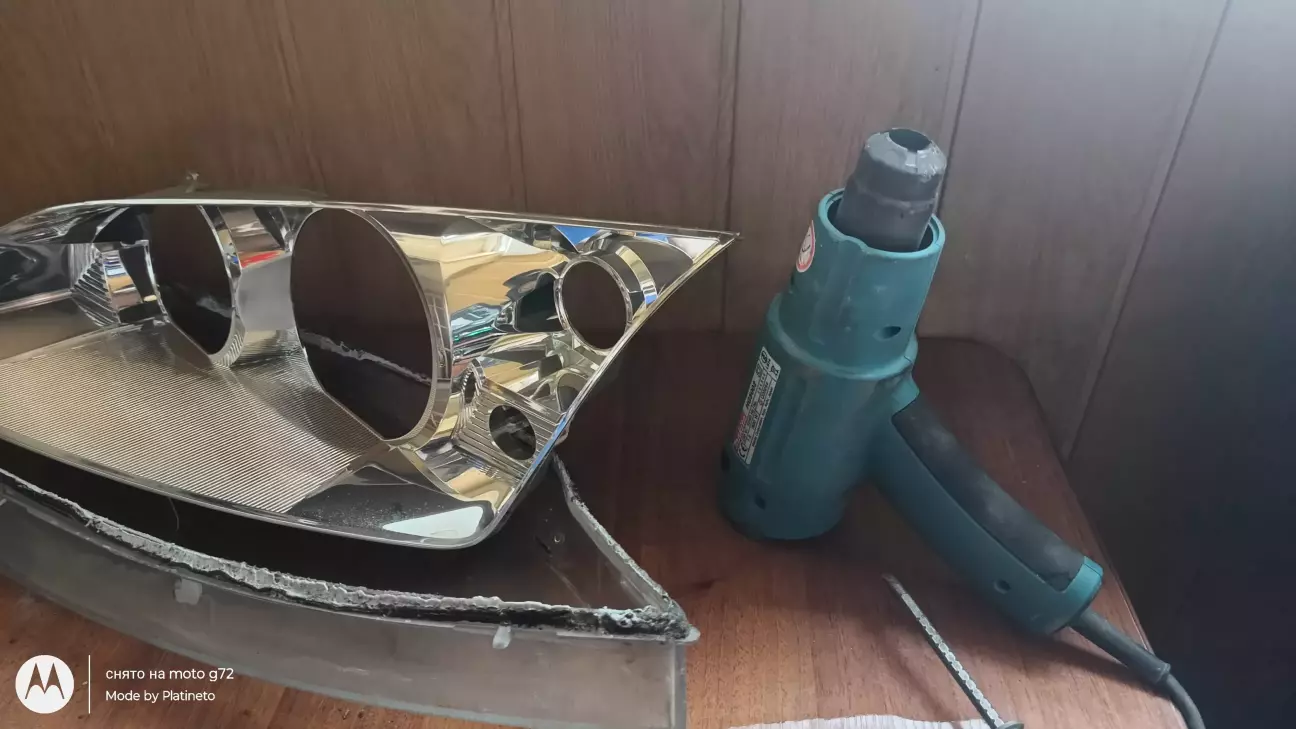 И тут я психанул и решил хватит это терпеть и купил линзы би-лед 3 дюйма и взяв фен отвертку взялся за работу ну и сразу же решил весь хром в фаре задуть черным так как хотел весь хром убрать с машины