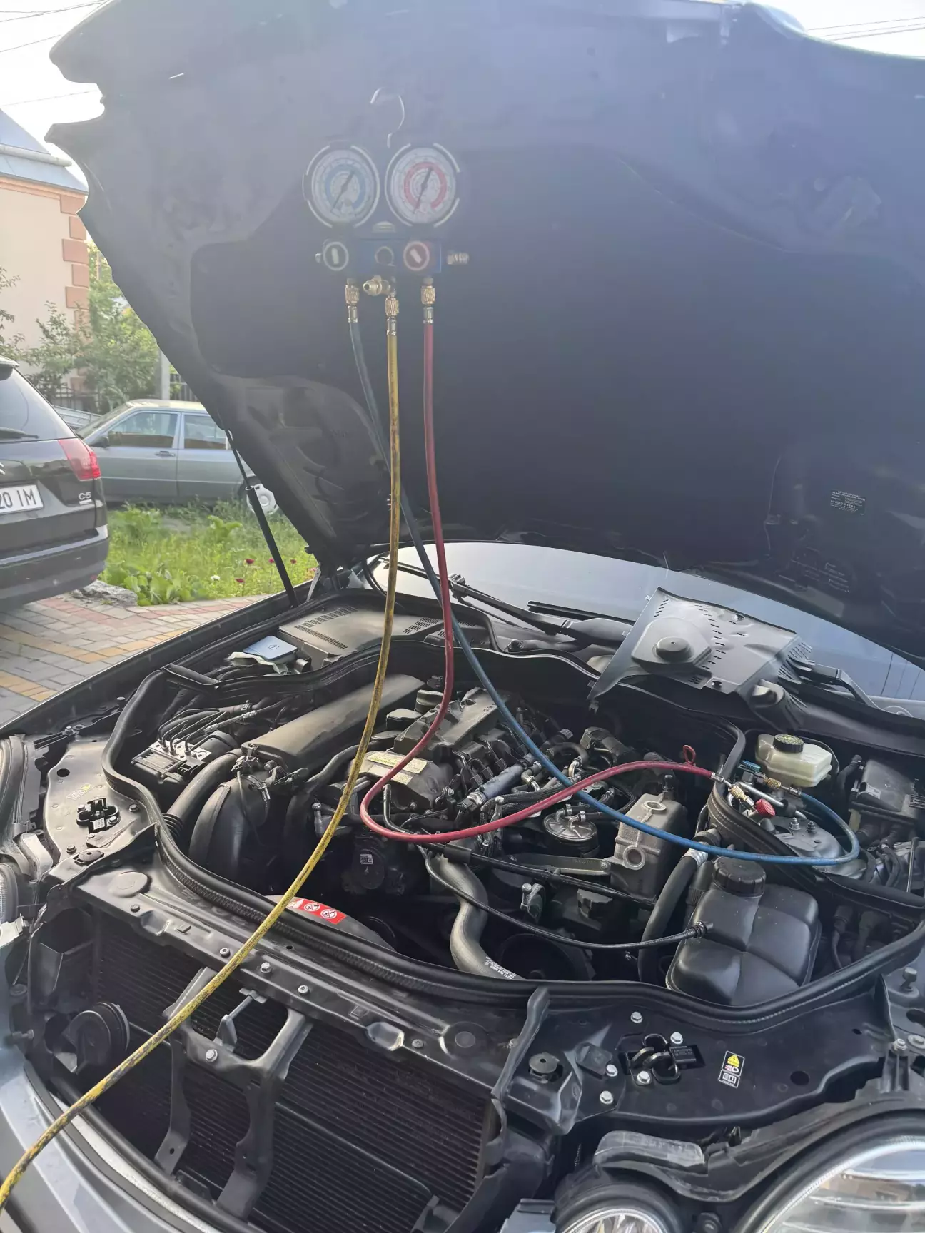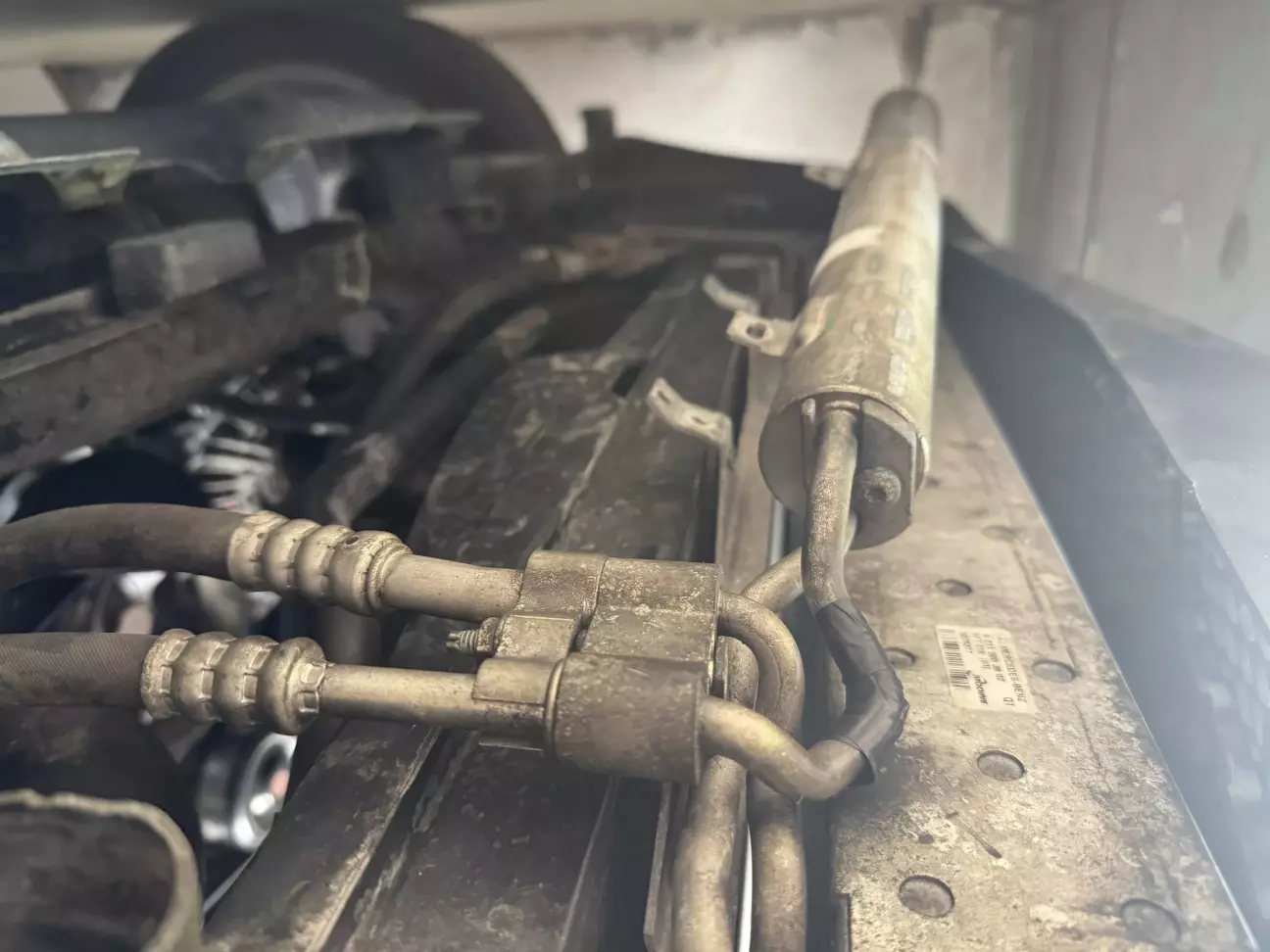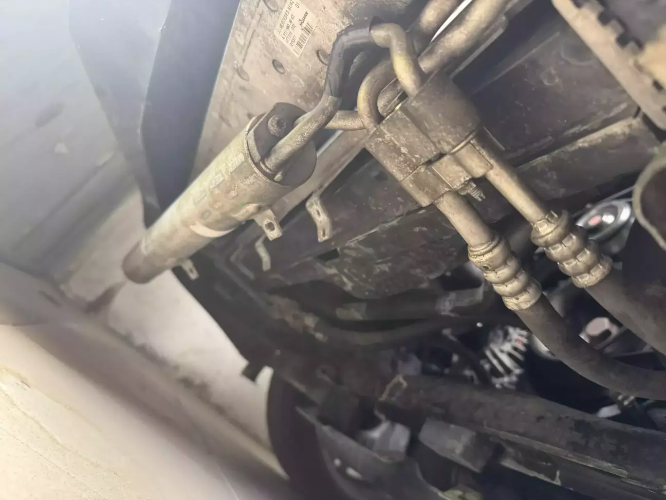 После снятия защиты снизу увидел что уходит фреон через трубку кондиционера.