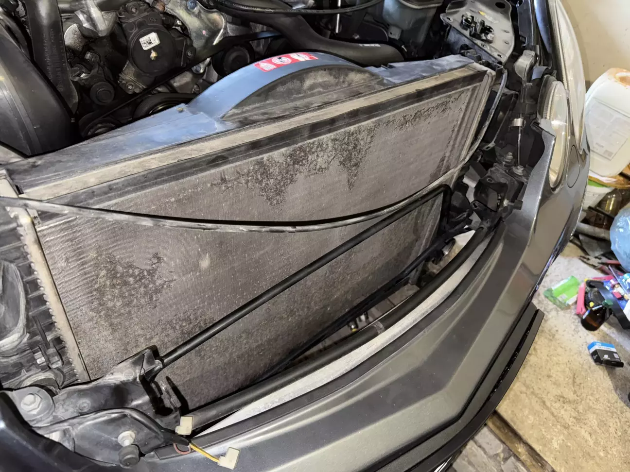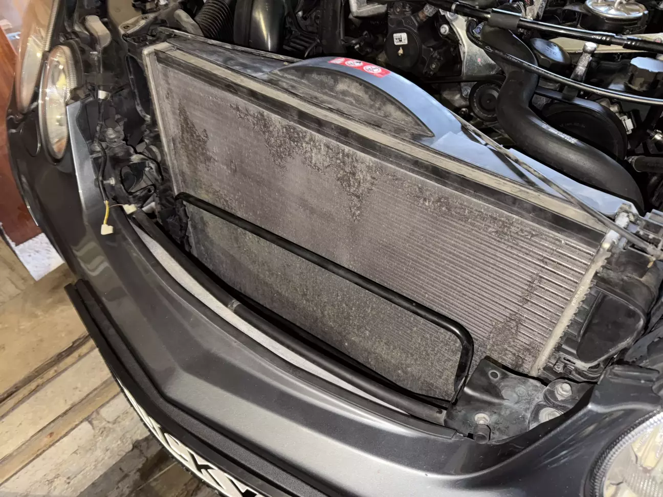 Потом у видел второй радиатор и зразу решил его промыть ,так как к нему был хороший доступ,вот какой он был: