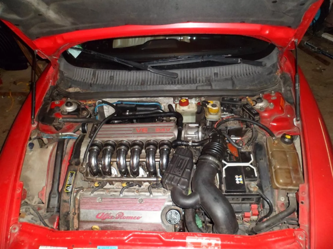 Хочу поделится с вами историей замены сердца Alfa Romeo 156. Немного предистории, поездив около полугода на данном автомобиле, я понял что 1,8 для этой машины маловато хоть и его характеристики для своего объема далеко не худшие (144 л.с.), но все равно это смешно для автомобиля с таким ярким внешним видом и спортивной внешностью. Каждый норовил на светофоре сделать ее, далеко не всем получалось, но даже BMW 525 в Е34 кузове уезжала от нее очень весело. Тут я понял что надо что-то менять, либо занятся доработкой и так не слабо выкрученого мотора 1,8 ТС или придумывать что-то иное. Продавать автомобиль не было не малейшего желания так как в нем уже много чего было сделано с душей. Почитав и подщитав бюджет более или менее нормального подема мощности мотора методом установки турбины, процентов так на 30-40 (ну что б вышло хотябы 200 л.с) я понял что это не целесообразно. Что б все вышло качественно надо было менять всю поршневую группу, переделывать выхлопную систему, покупать другие коллектора, блоки управления и программы, усиливать КПП и еще много чего другого, все это вылазило очень дорого и по более или менее знакомой мне Польше не было ничего из вышеперечисленных запчастей. У меня не было цели создать драгстер или автомобиль для кольцевых гонок, идея была просто получить автомобиль с хорошими характеристиками, отвечающий ее внешнему виду. Решение было принято покупать донора, уж очень хотелось взять под донора 156 GTA но они еще не так дешевы в Европе как хотелось бы. Во время выбора мной самая доступная GTA стоила 6000 Эвро, потому я выбрал для донора автомобиль с 2,5 мотором. Внешне мотро 2,5 почти ни чем ни отличается от 3,2 GTA но по характеристикам конечно проигрывает ТОП версии. Долго искать донора не пришлось, обзвонил несколько автомобилей, что находились не особо далеко от нас (в Польше) и поехали смотреть. Получилось так что купил я первый автомобиль что и смотрел, поляк оказался очень уступчивым, стартовая цена была 1700 Эвро, забрал я ее за 1200 Эвро. Скидка такая не хилая получилась потому-что этот парень-продавец переехал на ПМЖ в Швейцарию и там купил 156 GTA, а эту отставил родителям, а они оказались не сильными ценителями итальянского автопрома и немного испортили внешний вид авто, побили передний бампер, загадили салон, светился чек на приборке (с которым они не знали что делать). Короче по его словам им нужна не 156 с 2,5 мотором а Vw Passat с 1,9 ТД. Я в принципе видел что брал, кузов мне от нее не особо был нужен, а салон к сожалению по цвету мне тоже не подходил да и состояние его мне не нравилось. Короче мы расплатились, пожали руки и разъехались. Первый пару километров я просто поражался от динамики V6, после 4 тысяч она просто выстреливала до отсечки, такого я пока ни разу не ощущал на своей Альфе. Дальше подогнали мы ее под границу, расход правда был ожидаем, но немного многовато 11 л. по трассе, но потом мы эту проблему решили. Дальше темная история перегонки донора "воздухом" за 400$ через границу и она уже у меня под домом. Машинка была в состоянии на 4, надо было менять ремни, расходники, короче стандартный набор… Дальше расскажу о самом процессе переустановки…