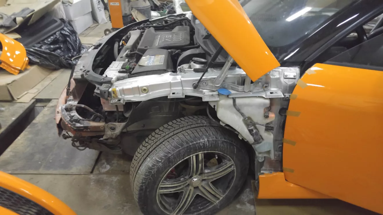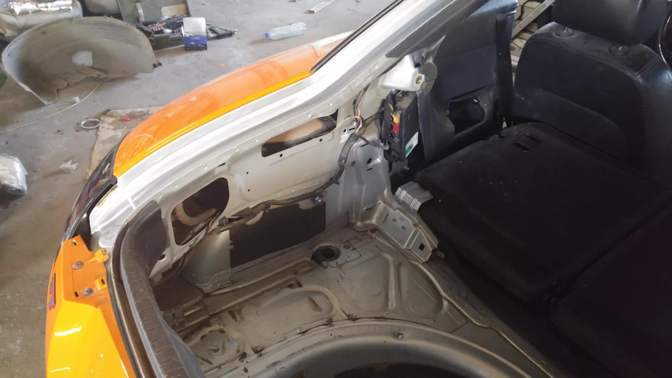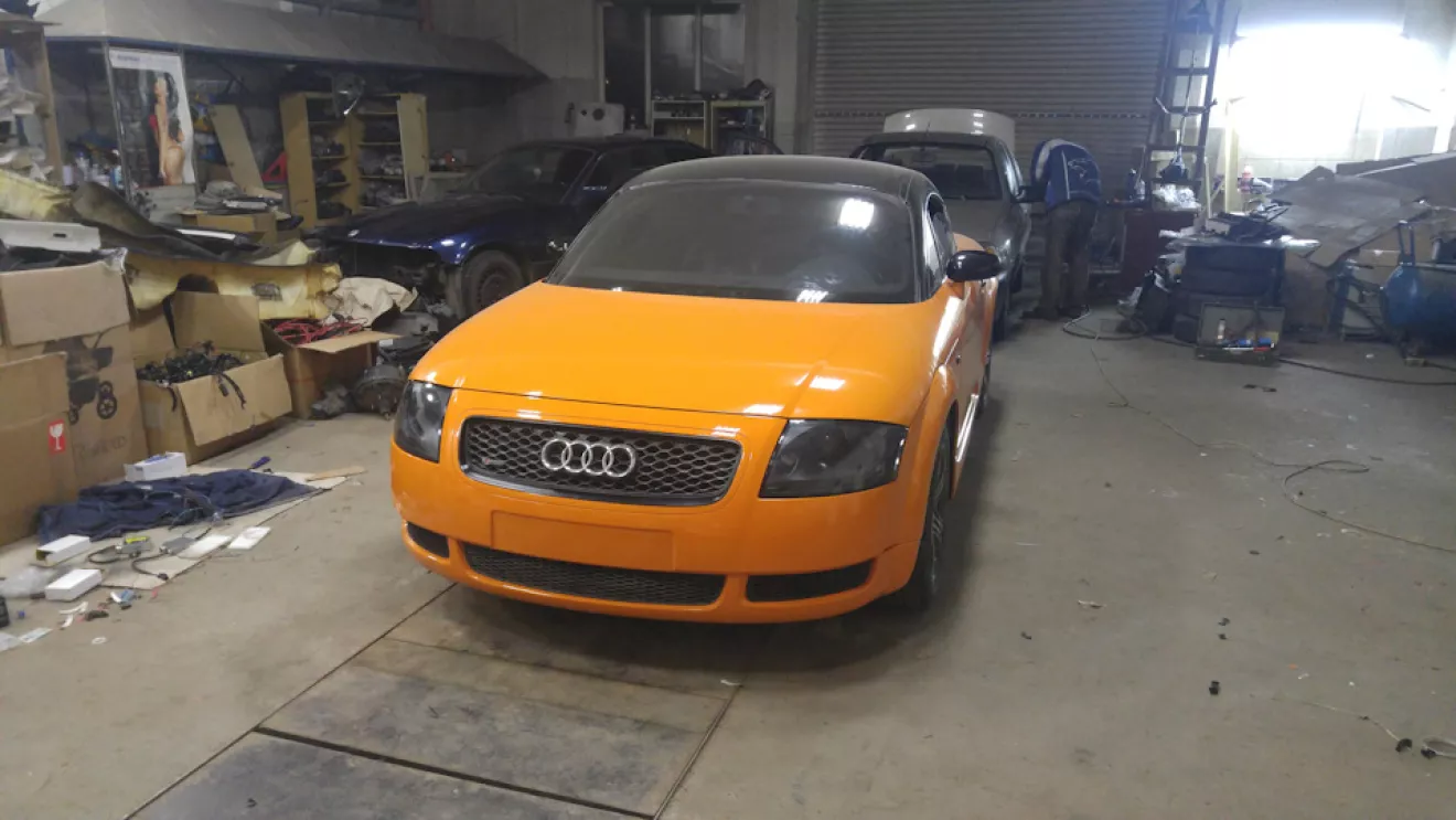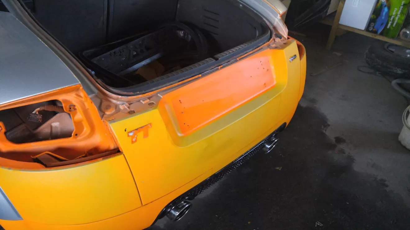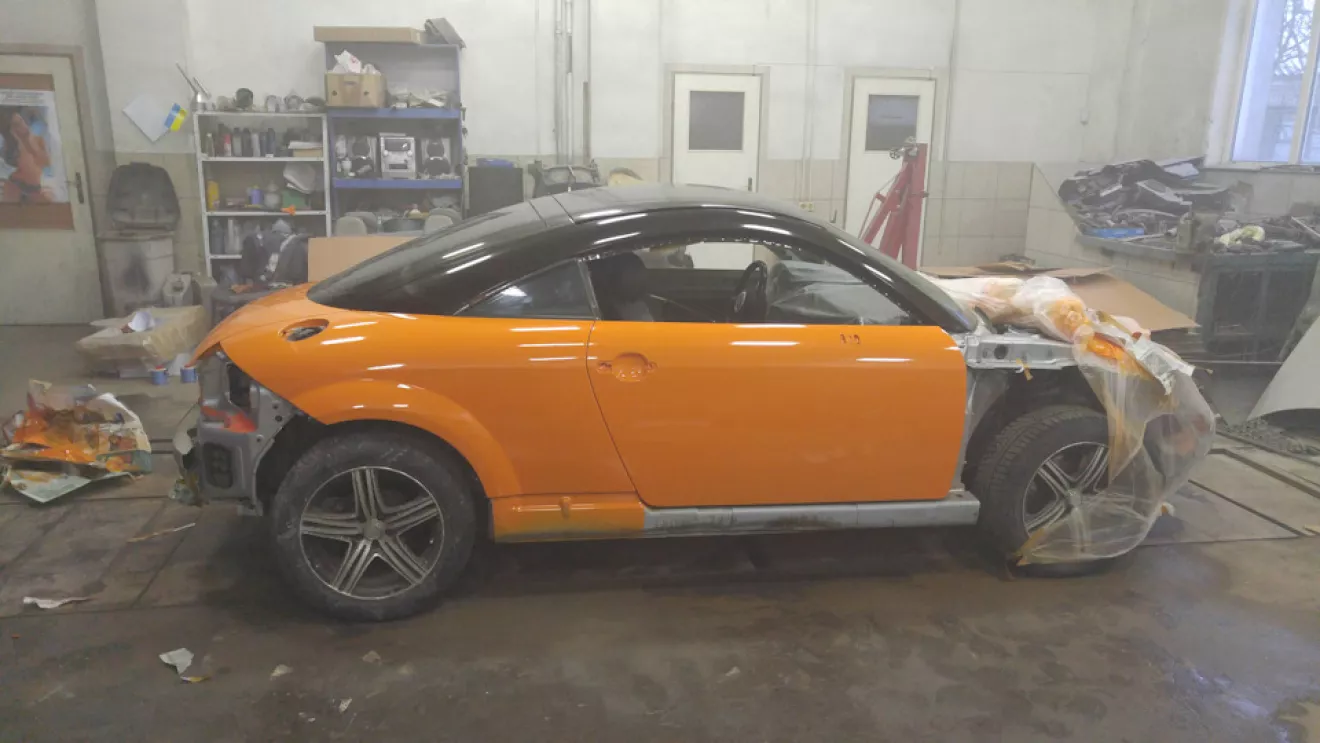 Как я уже и писал раньше, выкинутые деньги на ветер и неделя работы (это я про покраску жидкой резиной Пластидип). Появилось немножко времени и мы решили довезти автомобиль до надлежащего вида, надо было так сделать изначально, но мы не ищем легких путей… Короче содрали пластидип, разобрали автомобиль, подготовили и перекрасили (2 недели работы), писать там особо не чего, все трудоемко и скучно. Крыша так и исталась в черно-оранжевом ксералике, а основной цвет автомобиля так как у новых ТТS (solar orange LY2G). Собственно ниже все видно.Красивые фото собранного автомоюиля будут немного позже.