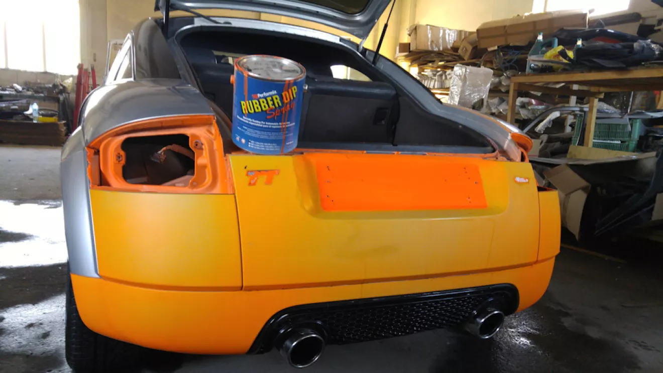 Хочу высказать свое негативное мнение о краске Plastidip (Rubber Dip) производителя Perfomix цвет Orange Blaze, короче г…но редкосное. Выкинуто 300$ на материал и куча работы сначала с покраской, а потом с демонтажем и подготовкой под обычную краску. Собственно купили летом 4 банки по 2,5 литра (в сумме 10 л), разобрали легенько автомобиль, покрасили, все было очень красиво и ярко но совсем недолго (около 2 недель), на солнце краска начала стремительно выгарать, в итоге получился ужас, там где падают прямые солнечные лучи краска стала не то что оранжевая, а серая, белая и тому подобное, где меньше попадает солнце осталась светлооранжевая, там где солнце не попадает (под спойлером например) осталась такой как была после покраски. Если мы не придержались каких-то нюансов покраски, то тут я не понимаю причины… Опыт покраски пластидипом уже был (белым красили микроавтобус Peugeot Boxer 3, серым кварцем красили кабриолет Audi 89) с ними таких проблем не возникло, но там цвета не яркие. Собственно доказательства ниже.