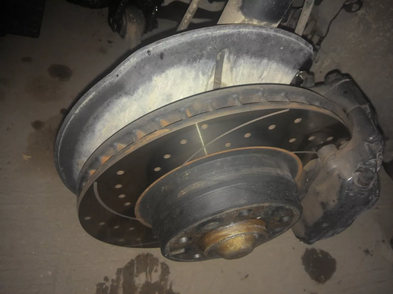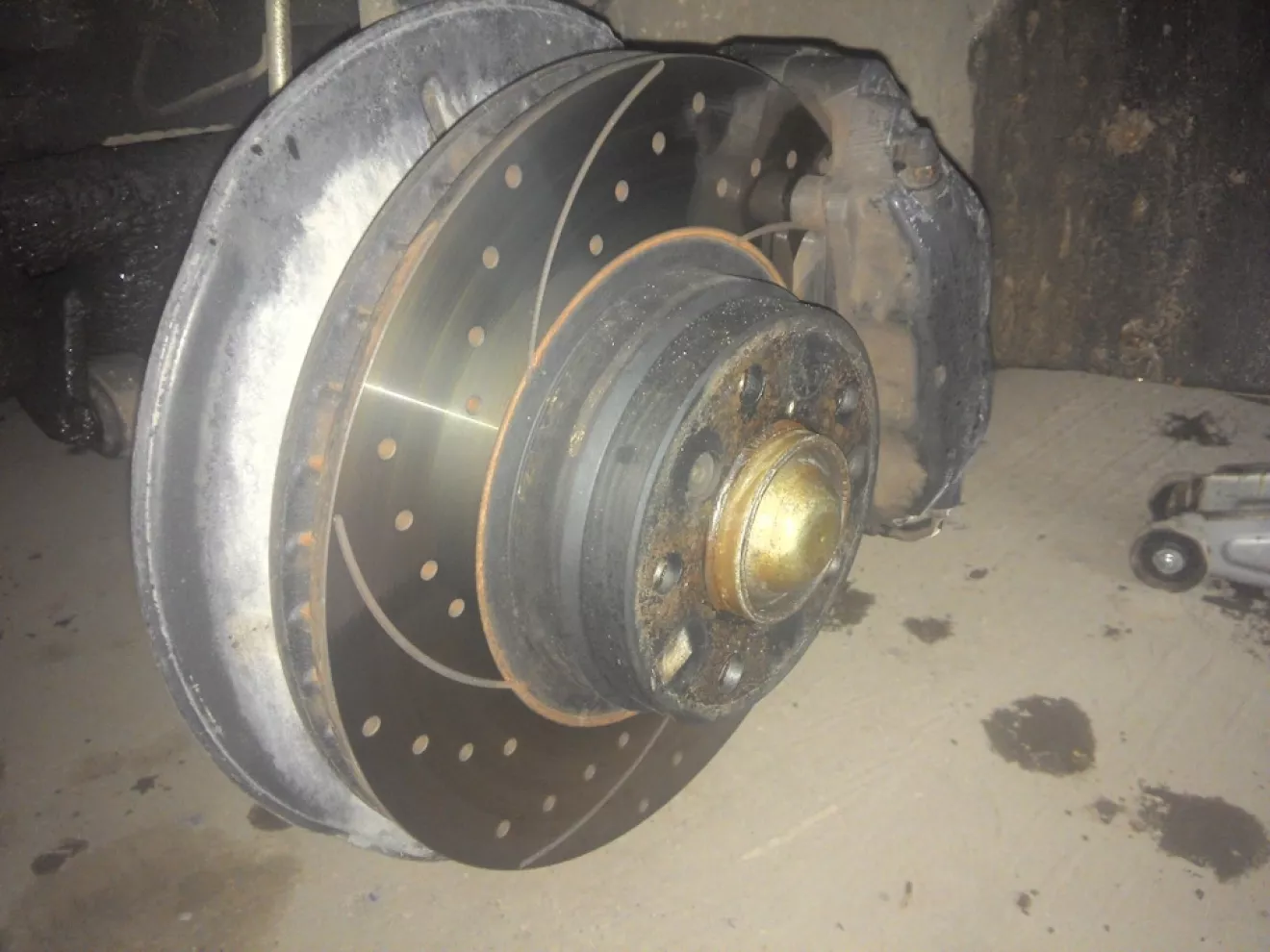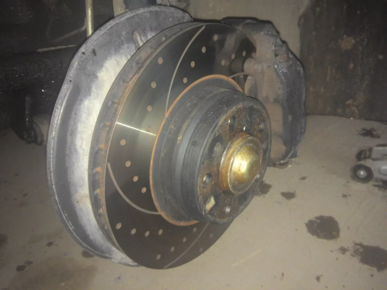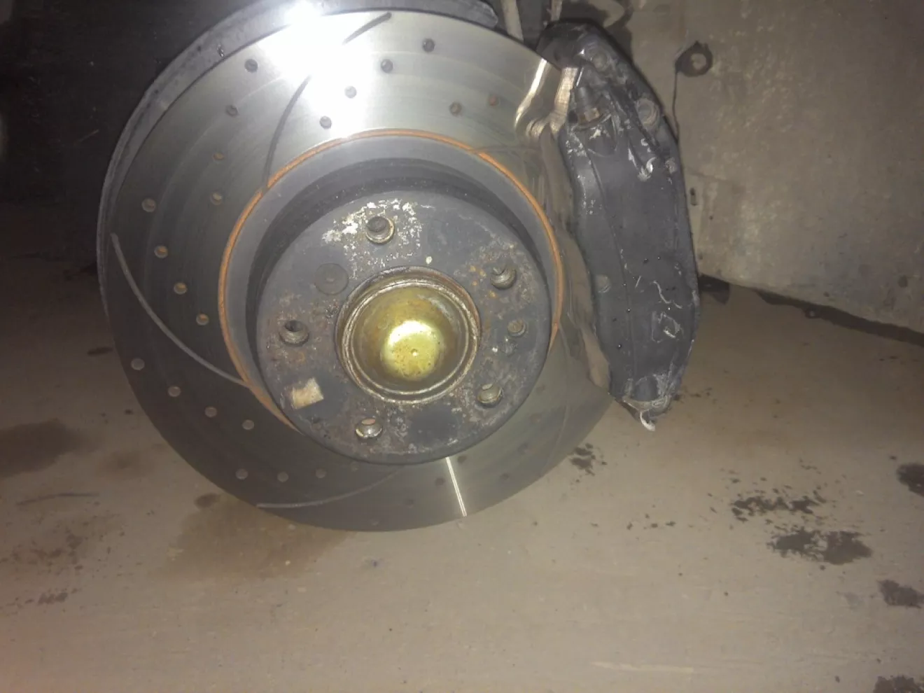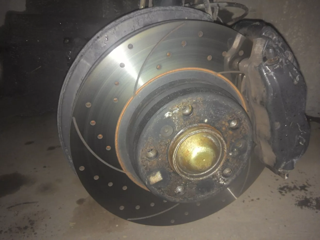 Хотел поделится наблюдением, менял колеса на зимние и решил заснять состояние перфорированных тормозных дисков Mikoda на машине. Вот так они смотрятся через 4 года после установки))). Можно сказать какие были такие и остались… Ну и пару фото машины ожидающей весны, но уже на зимних колесах.