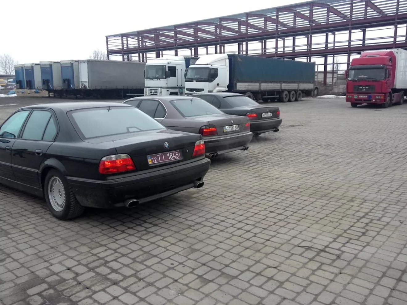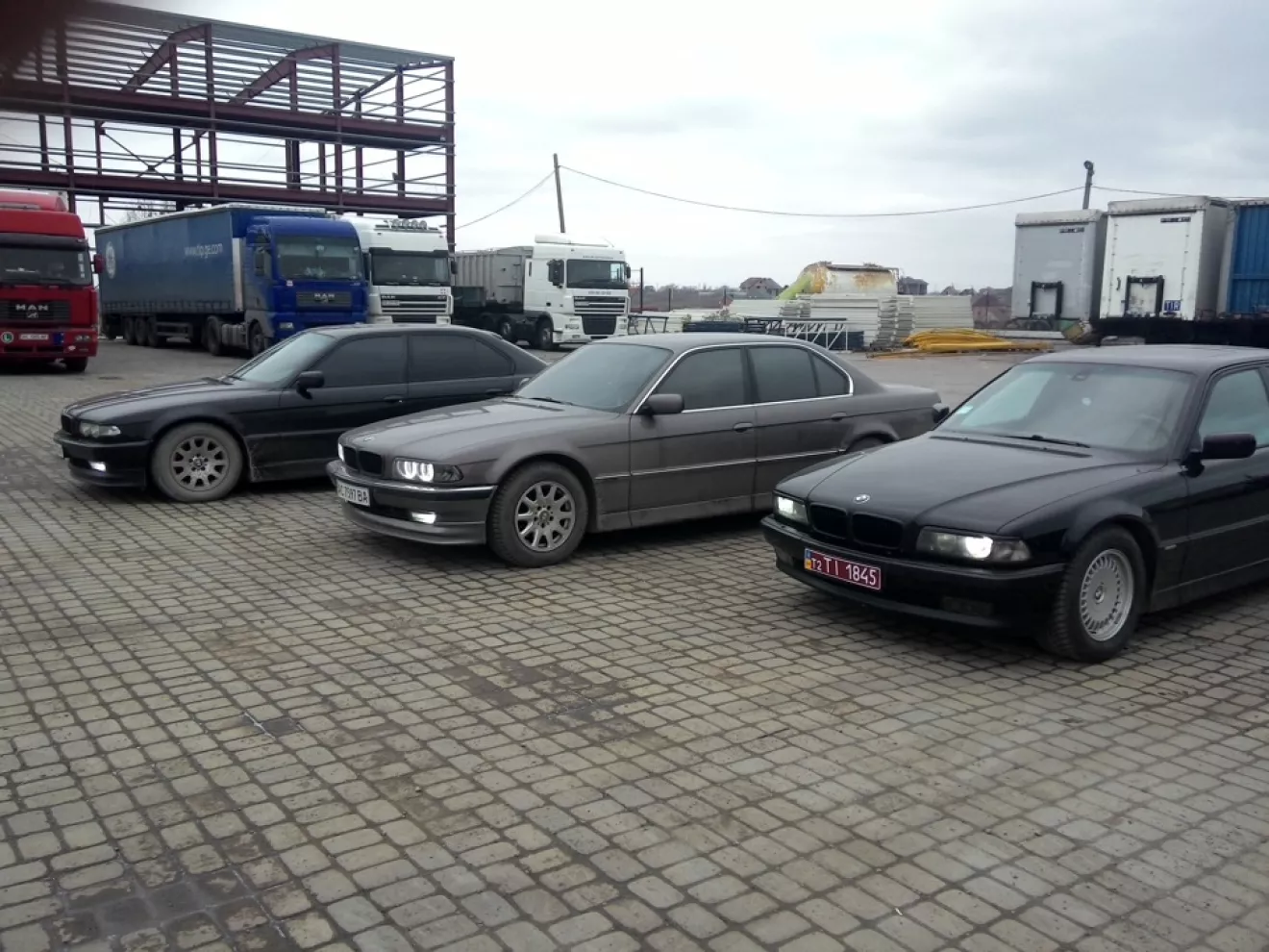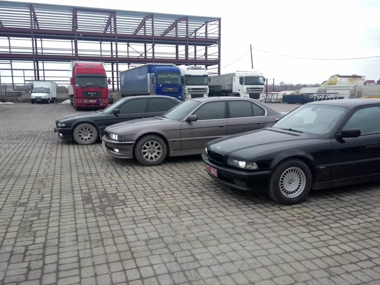 Но как оказалось не требовалось ехать так далеко, нашли подходящий экземпляр в Ровно, цена конечно была не адекватна для ее состояния, но хозяева хорошо уступили и мы решили брать эту машину (это черная 735 в хорошей комплектации, состоянии на 4, но руки у покупателя растут из правильного места и скоро она будет в отличном состоянии). Вот небольшой фото отчет о нашем "клубе Е38)))"