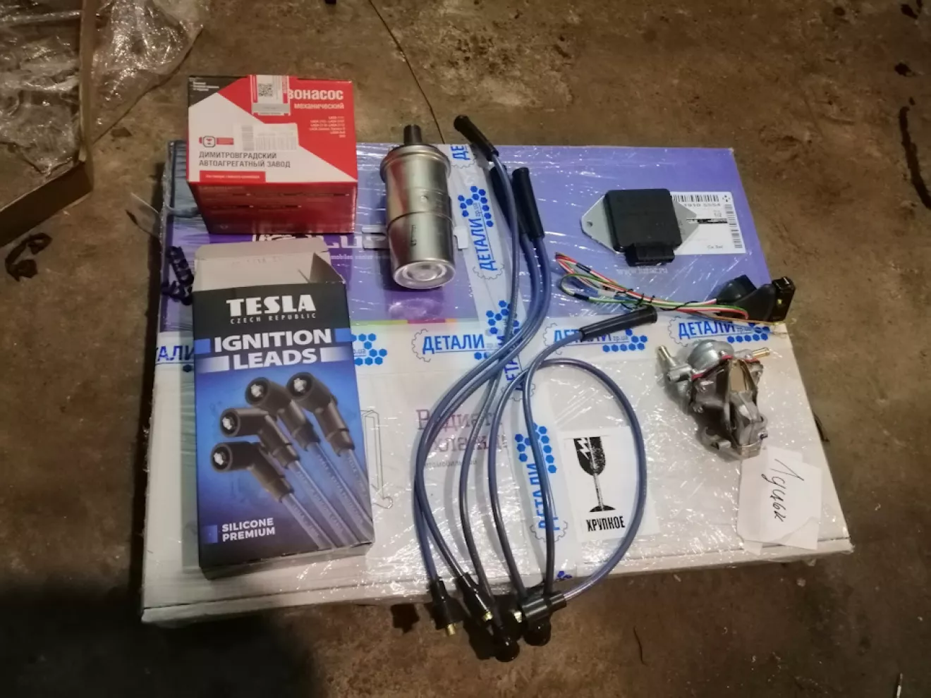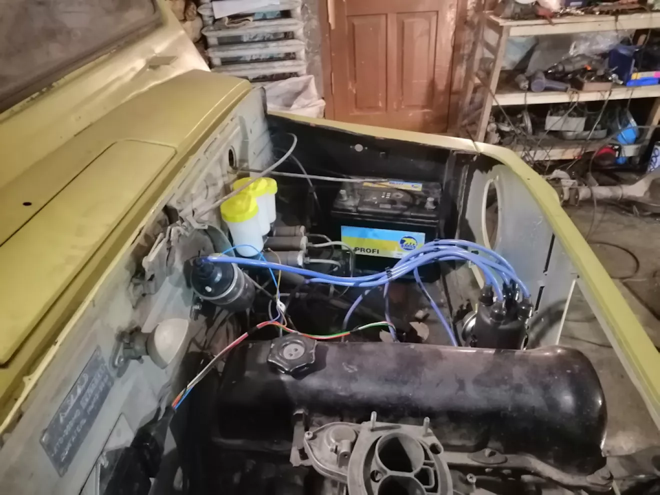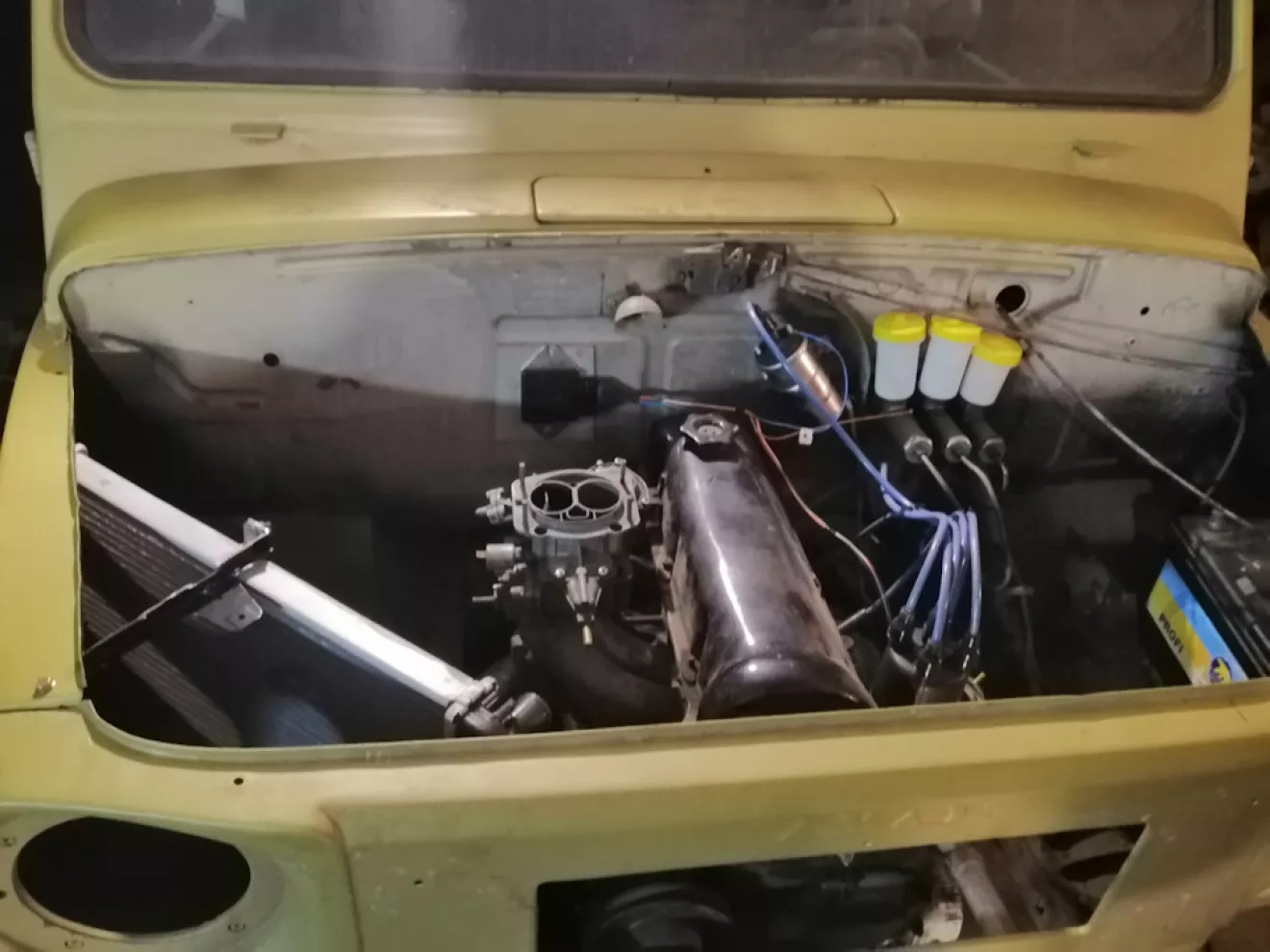 На днях пришла посылка с новыми деталями для запуска, комплект бесконтактного зажигания, бензонасос, провода, радиатор ВАЗ 2108. Также подготовили выхлоп (штаны из нержавейки от классики переварили, глушитель и резонатор от Вольво V40). Уже не терпится делать первый запуск, но еще надо собрать новую топливную магистраль под вазовский бак, намудрить с патрубками охлаждающей системы. Также на выходных прокачали тормозную систему и систему сцепления, залил пока DOT 4, посмотрим как себя поведет. Ну и напоследок прикинул капот, не мешает ли радиатору. Собственно выходные провел в гараже.