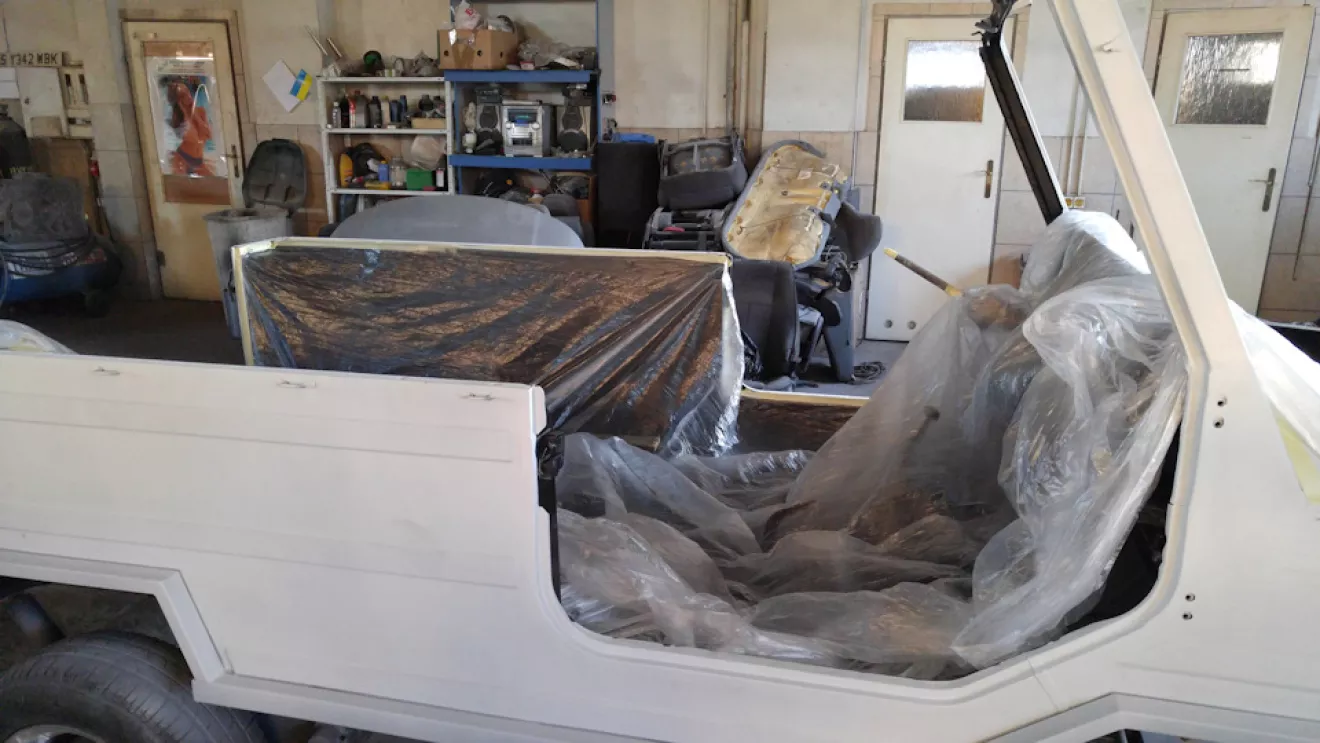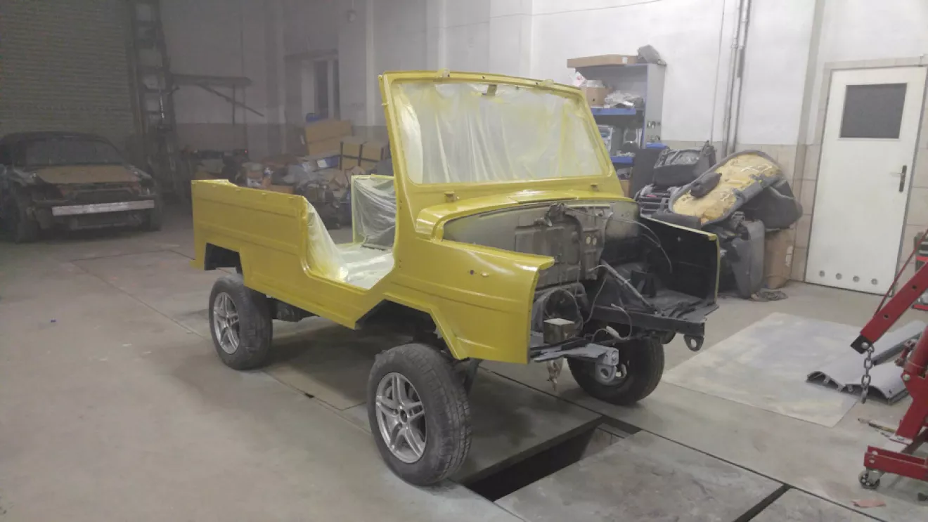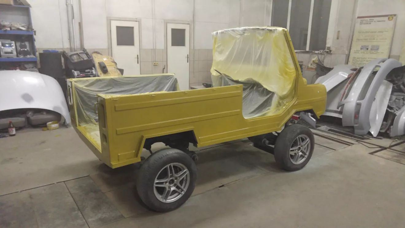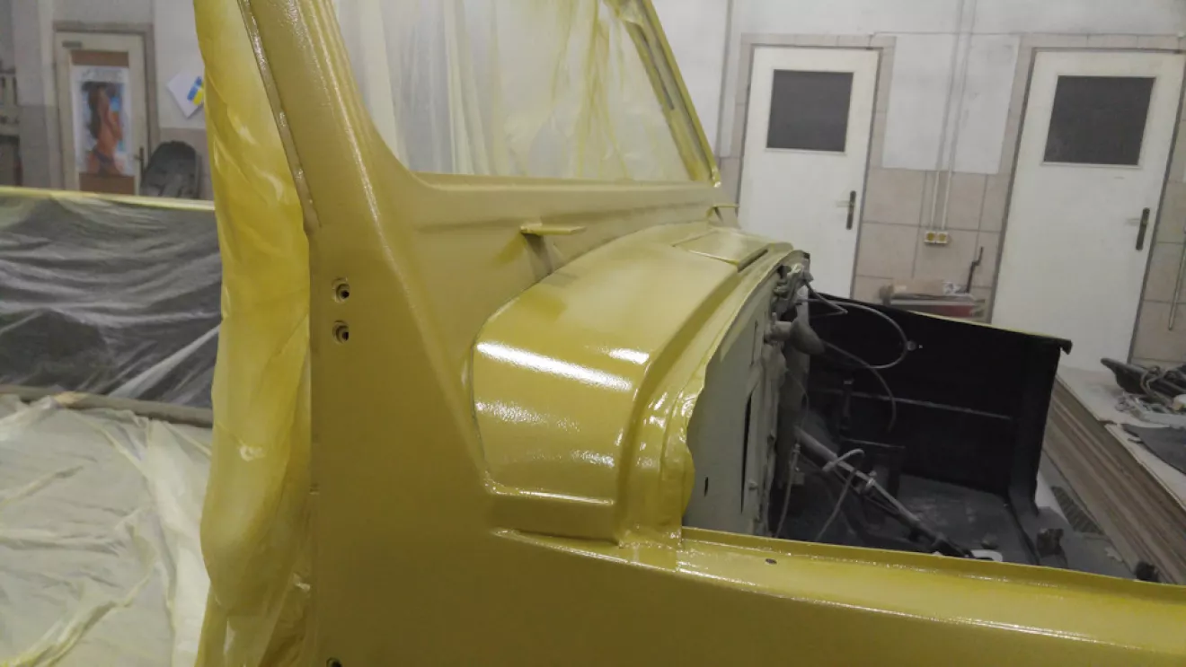 Пару дней назад покрасили кузов, внутрянка черный Раптор, наружа бесцветный Раптор с золотым наполнителем, красил обычным пульвером с дюзой 2.0, помоему получилось симпатично, еще расширители арок и полоски покрашу черным и по кузову будет финиш. Еще остались двери, капот, рещетка и задняя дверь… На заднем плане ТТ под полный перекрас после пластидипа.