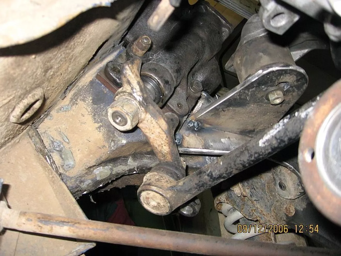 13. для установки 5ст КПП от Полонеза куплена и поставлена подушка от того же Полонеза, а крепеж к кузову сделан из метало профиля