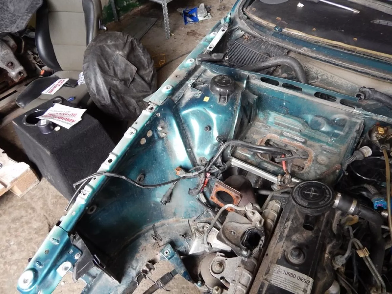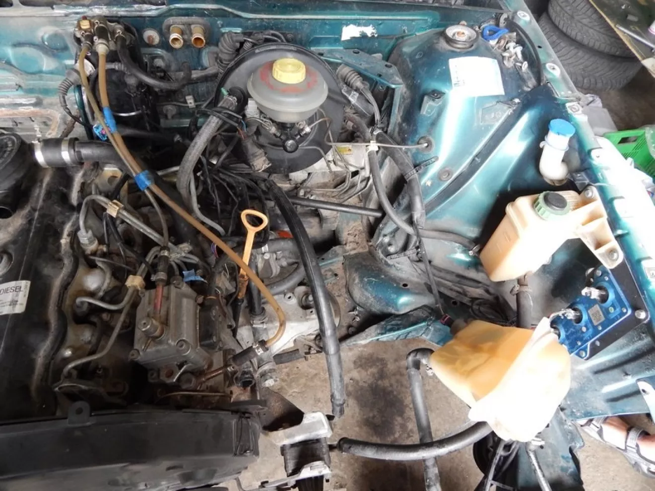 После того как были проведены кузовные работы и результат и внешний вид мне понравился я понял, что просто сделать капремонт остальных деталей будет не интересно, мотор который стоял в автомобиле (от ВАЗ 2103 технологично и морально устарел), да и качественных запчастей к силовому агрегату особо нету, моторист сказал, что с качеством з/ч как повезет, может после ремонта проездить 20 тыс, а если повезет то и 100 тыс. Но так как у меня был и есть доступ к недорогим з/ч от иномарок, я решил попробовать установить дизель. Много информации почитал в нете про дизельные Нивы, про моторы, что в них ставят. Оказалось самый популярный двигатель 1,9 от Пежо, Ситроен но у меня под рукой такого не было, а был довольно неплохой донор AUDI 80 B4 с мотором 1,9 TDI. Были проведены замеры подкапотного пространства Нивы, собрано инфо, что опыт установки данного мотора в ВАЗ 2121 у людей есть, я решил покупать данный экземпляр и конструировать Ниву (Powered by Audi).