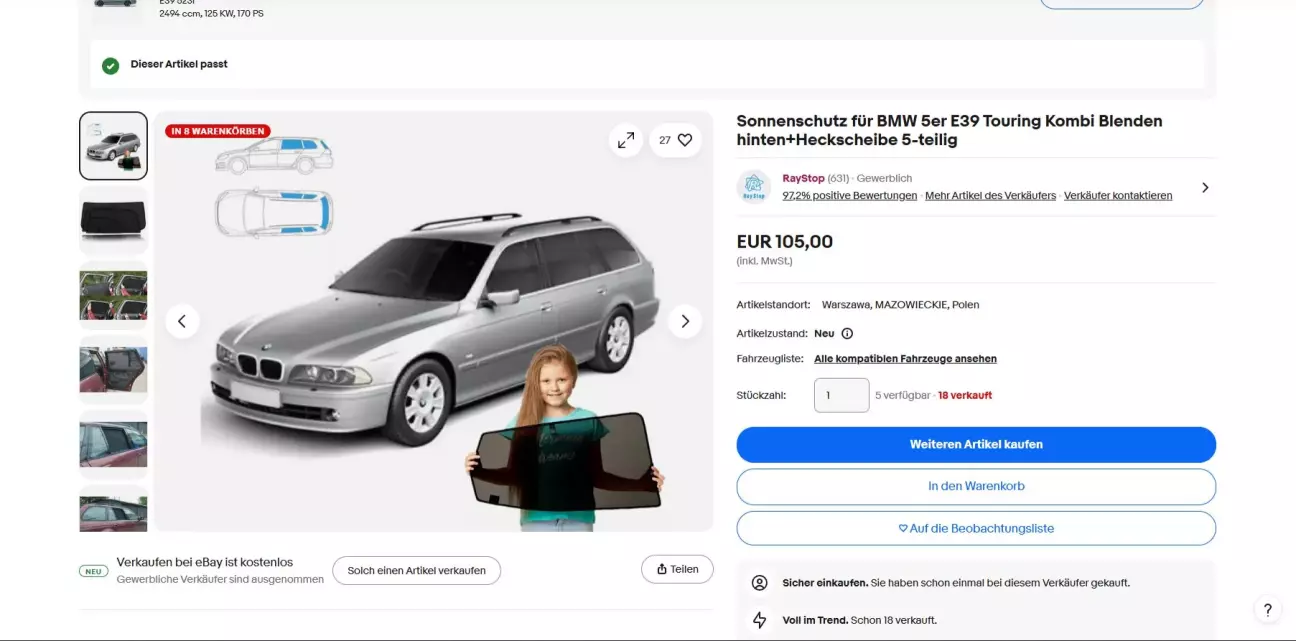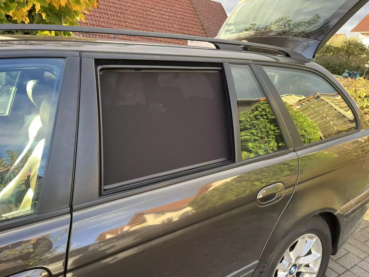Але я знайшов рішення від поляків. Польська фірма RayStop (це жодного разу не реклама. Бо ніхто мені за неї не платив. А хотілось би…😁) виготовляє комплекти високоякісних сонцезахисних сіток для E39 та E39 Touring. Та в принципі, вони ще багато чого вони виробляють і не тільки для БМВ.