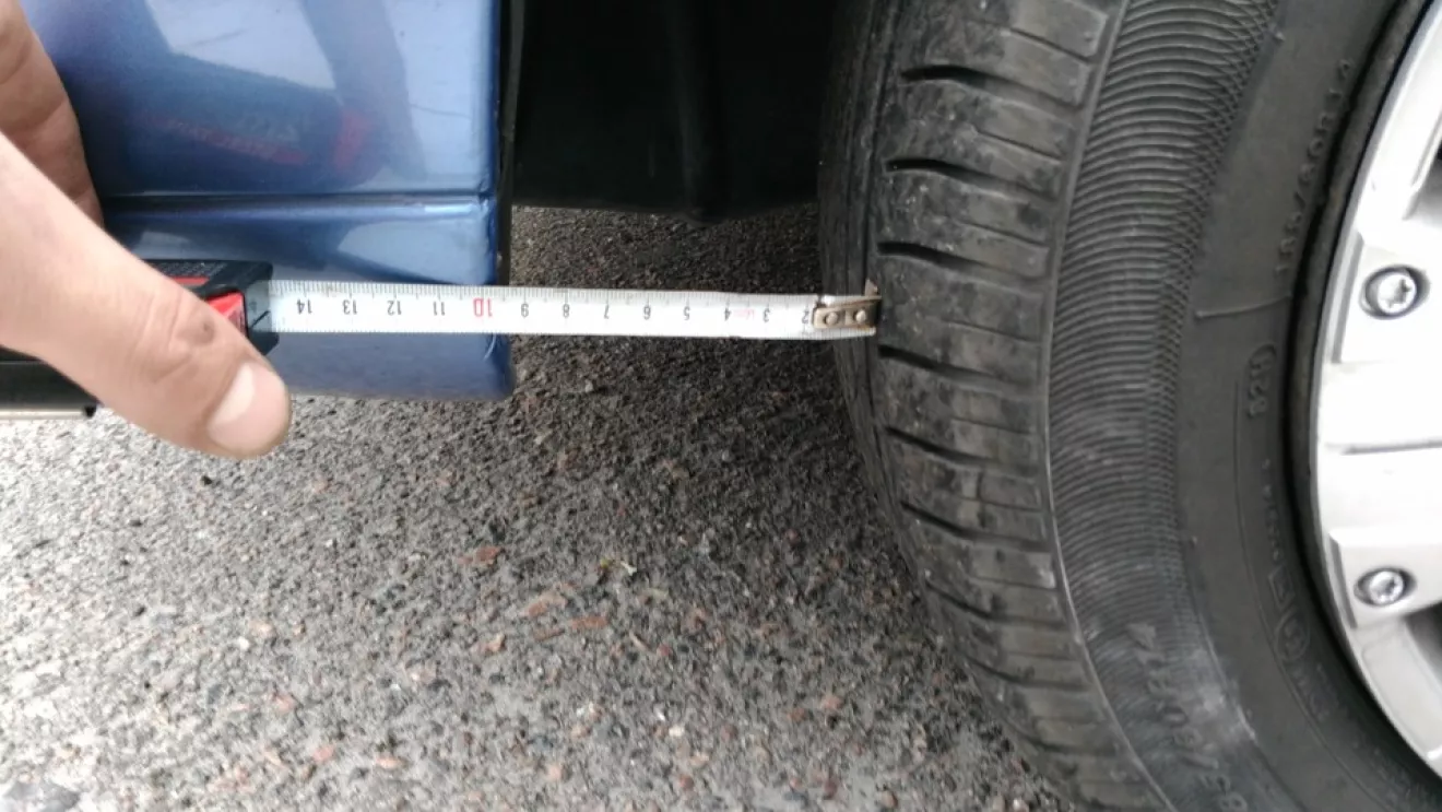 После огромной ямы левое колесо стало гораздо ближе к двери и дальше от бампера