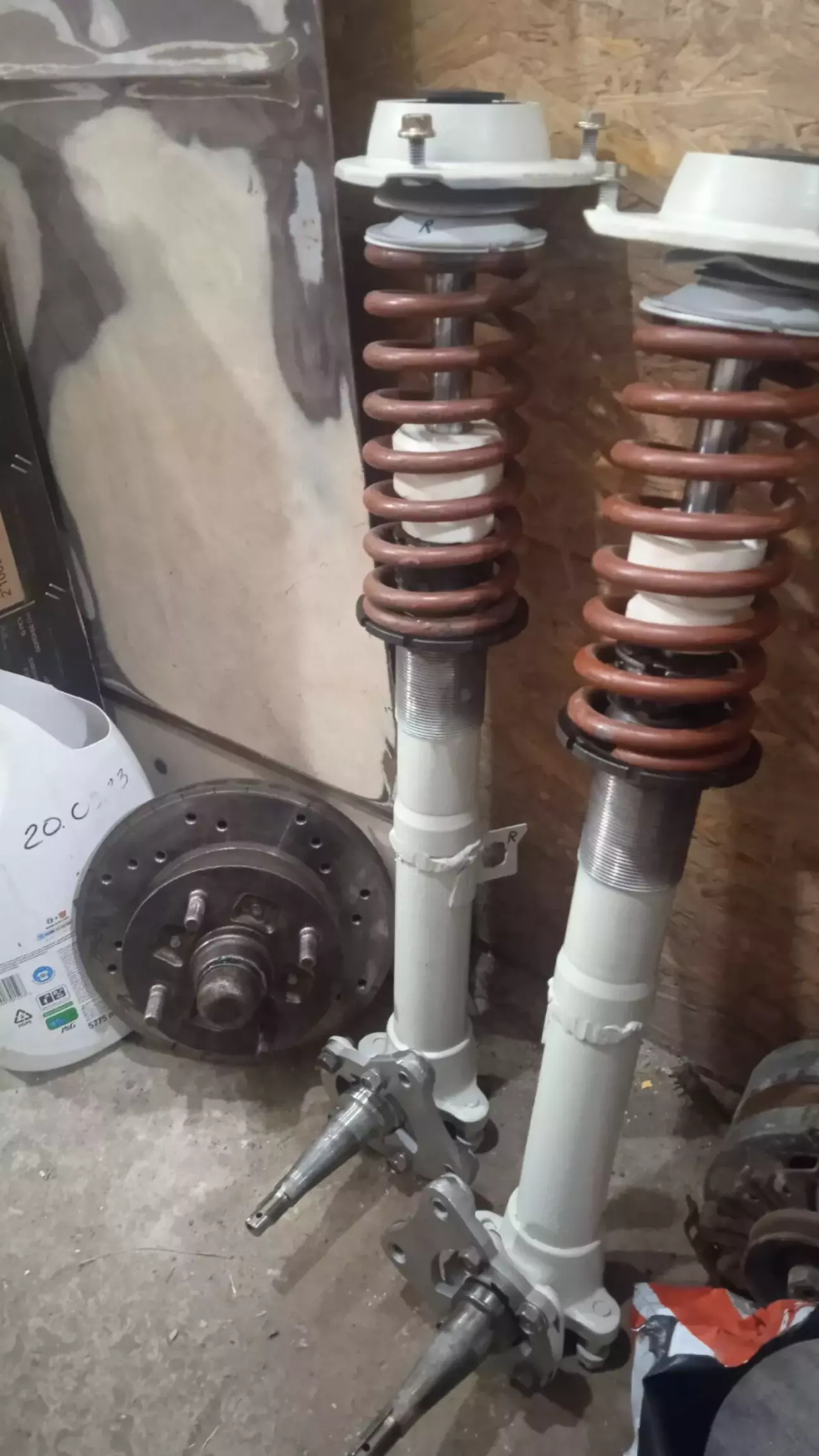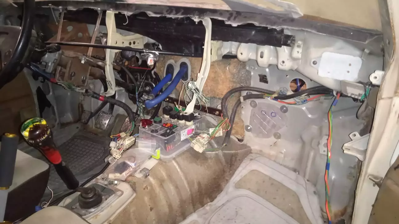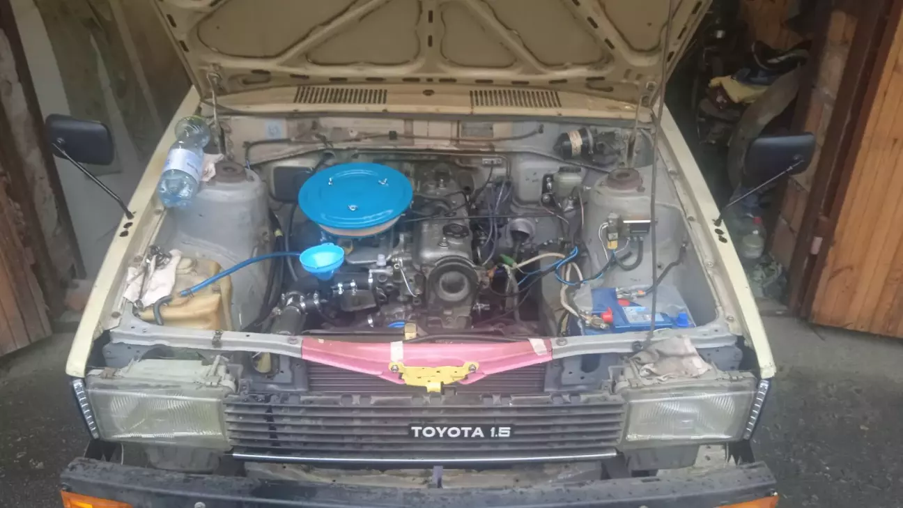 Майже 10 років тому задешман був придбаний голий праворукий автоматний кузов. Оскільки в закромах була наявна рейка та балка під лівий руль, вочевидь став складати перекинутого руля. Із спеку. Мотор 3а сток від ае85. Коробас від ае85. Рейка гольф 2 / пасат. Підвіска поки що сток, але койловери на підході з гальмами від Ланос. Ггц Каріна. Трос зчеплення самопал з троса ручного гальма ваз. Радіатор і вентиль ваз 2110. Фари і решітка рест 70 корола. Капот і крила дорест 70 спрінтер. Бензобак бачок автономних на 13 л. Електрика повністю нова. З боксом з пластику харчового і запобіжниками газель.