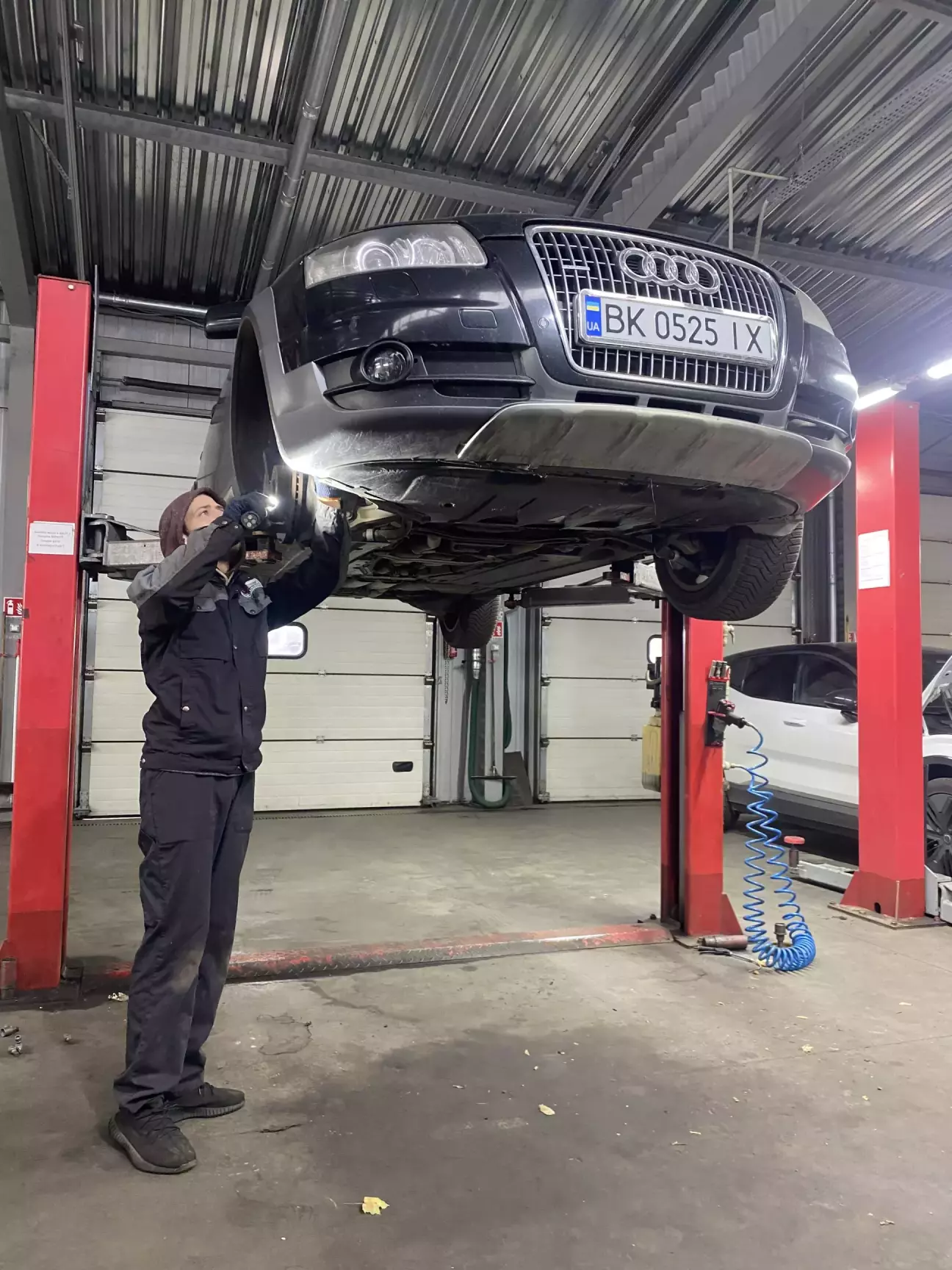 Добрий день. Продовжую опис своїх техоглядів. Попередній власник авто рекомендував мені обслуговувати пневму там де і він, а саме в конторі Пневмолайф(адреса Новокостянтинівська 4А на Подолі). Особливо він наголошував що перед зимою треба поміняти повітряний фільтр компресора(новий ноунейм на фото, в оригіналі там має бути фірми Wabco) тому що в ньому може замерзнути вода і будуть страшні помилки на приборці по пневмопідвіскі. Також в мене була помилка по датчику температури компресора, я купив новий китайський датчик(оригінальні коштують від 3500 грн) Неприємно вразила висока вартість таких начебто простих запчастин, але маємо те що маємо. Приїхав на сервіс з самого ранку по попередньому запису, Пневмолайф не має своїх боксів з підйомниками, вони базуються на території великого СТО ЗС Авто груп. Їхній механік і знімав/ставив мій компресор для заміни. Процедура надзвичайно проста, можна було мені і самому це зробити за допомогою домкрата і набора інструменту. Спочатку знімається праве переднє колесо, потім захист двигуна, і зʼявляється гарний доступ до компресора, який висить в районі правого крила на 4 болтах. Заміна датчика і фільтра-10хв максимум. Питав про діагностику всієї пневмопідвіски авто, сказали що без зняття вузлів практично нічого неможливо побачити і якщо авто не падає «на пузо» то значить все добре😁