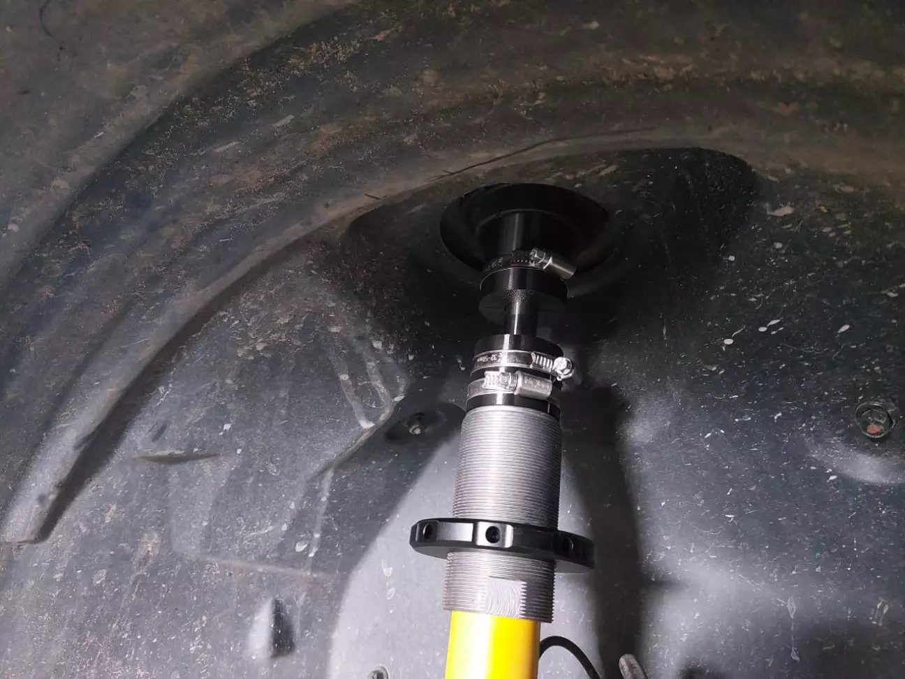 Для зменшення похибки потрібно зафіксувати підвіску, щоб при підйомі однієї і завантаженні іншої осі не змінилось положення важелів. Оскільки ззаду в мене амортизатори типу вухо-вухо на їх місце я поставив регульовані важелі сходження, які лежали в металобрухті з якоїсь Тойоти, попередньо їх вкоротивши. Перед вирішив зафіксувати шляхом встановлення пластикових півкіл, які одягнув на шток амортизатора.