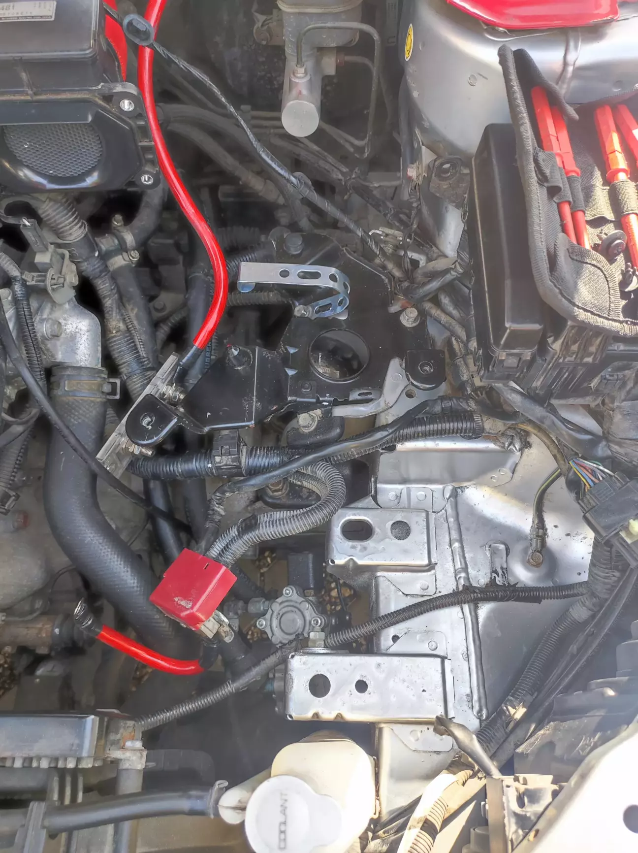 Возник вопрос о переносе АКБ, чтобы освободить место под новый тракт впуска. Пришлось полностью изготовить под штатные крепления новую площадку для аккумулятора.