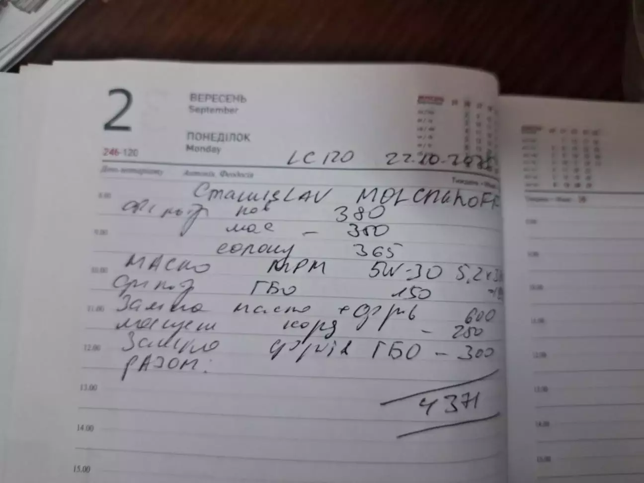 Запись пишу абы було - замена масла, всех фильтров. Газовых фильтров. И пошприцовали.