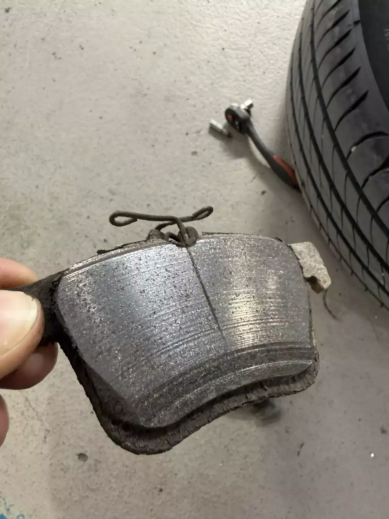 Також міняємо задні гальмівні колодки. Старі ще мали біля 5мм за 107тис.км. Нові, по замірам, мають 10мм. Підглянувши в @ivmulder, які він собі встановлював, вирішив теж такі прикупити:)