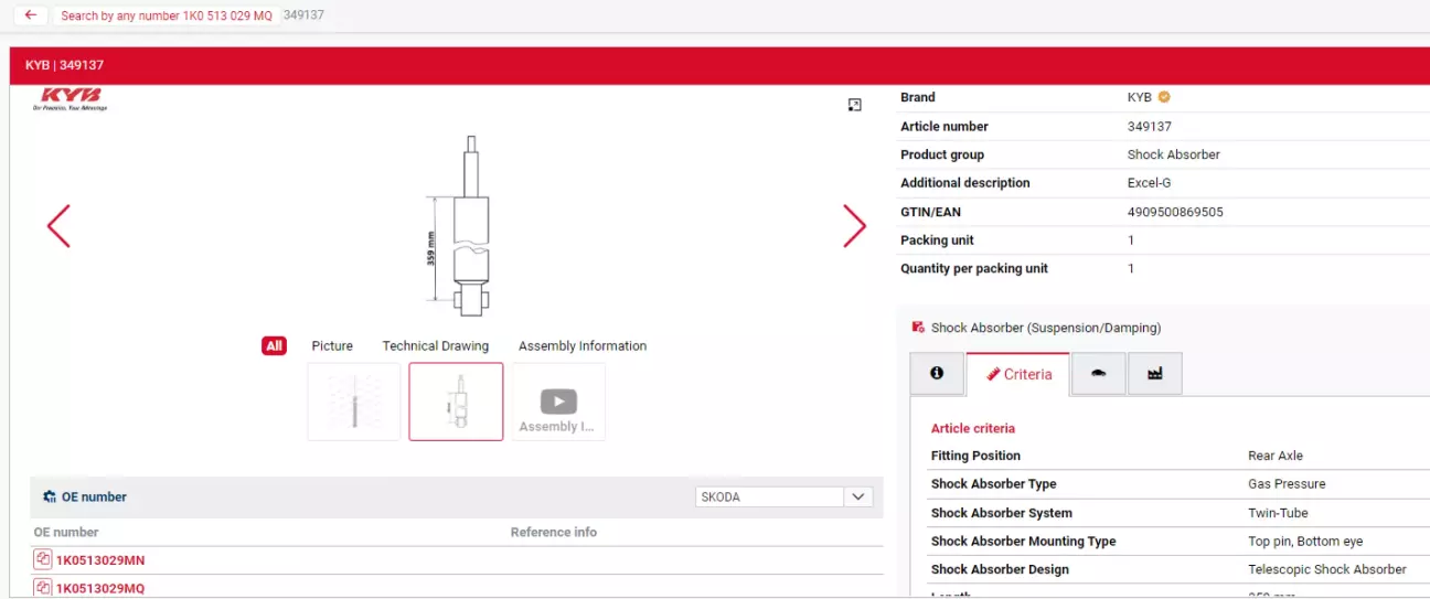 Як аналог до рідних VAG 1K0 513 029 MQ б'ється KYB 349137: