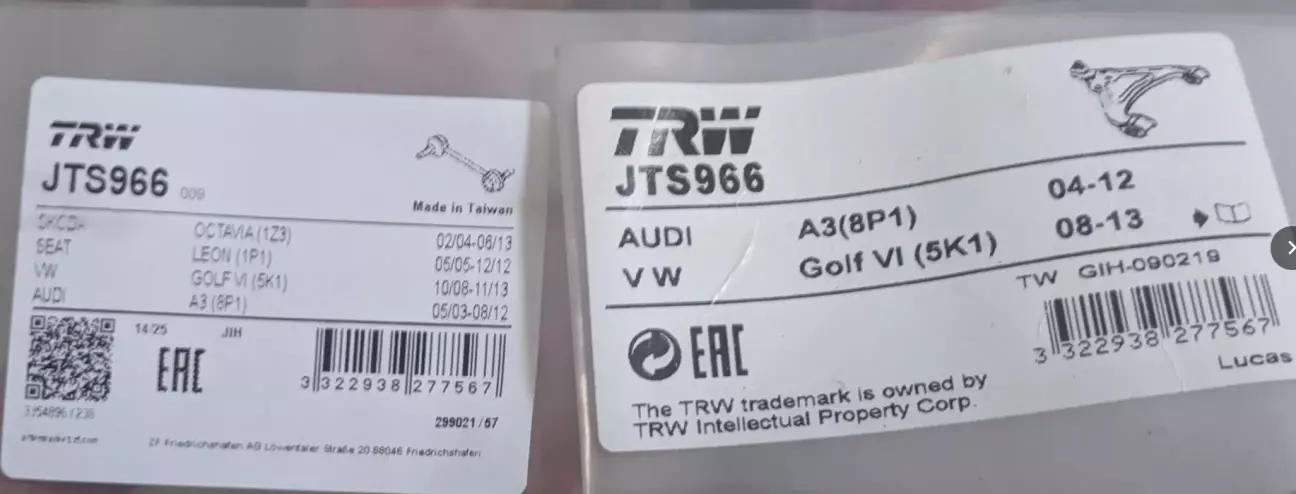 -- Важіль задній поперечний: 2 шт. TRW JTS966 (VAG 1K0 501 529 J) = 1635 грн