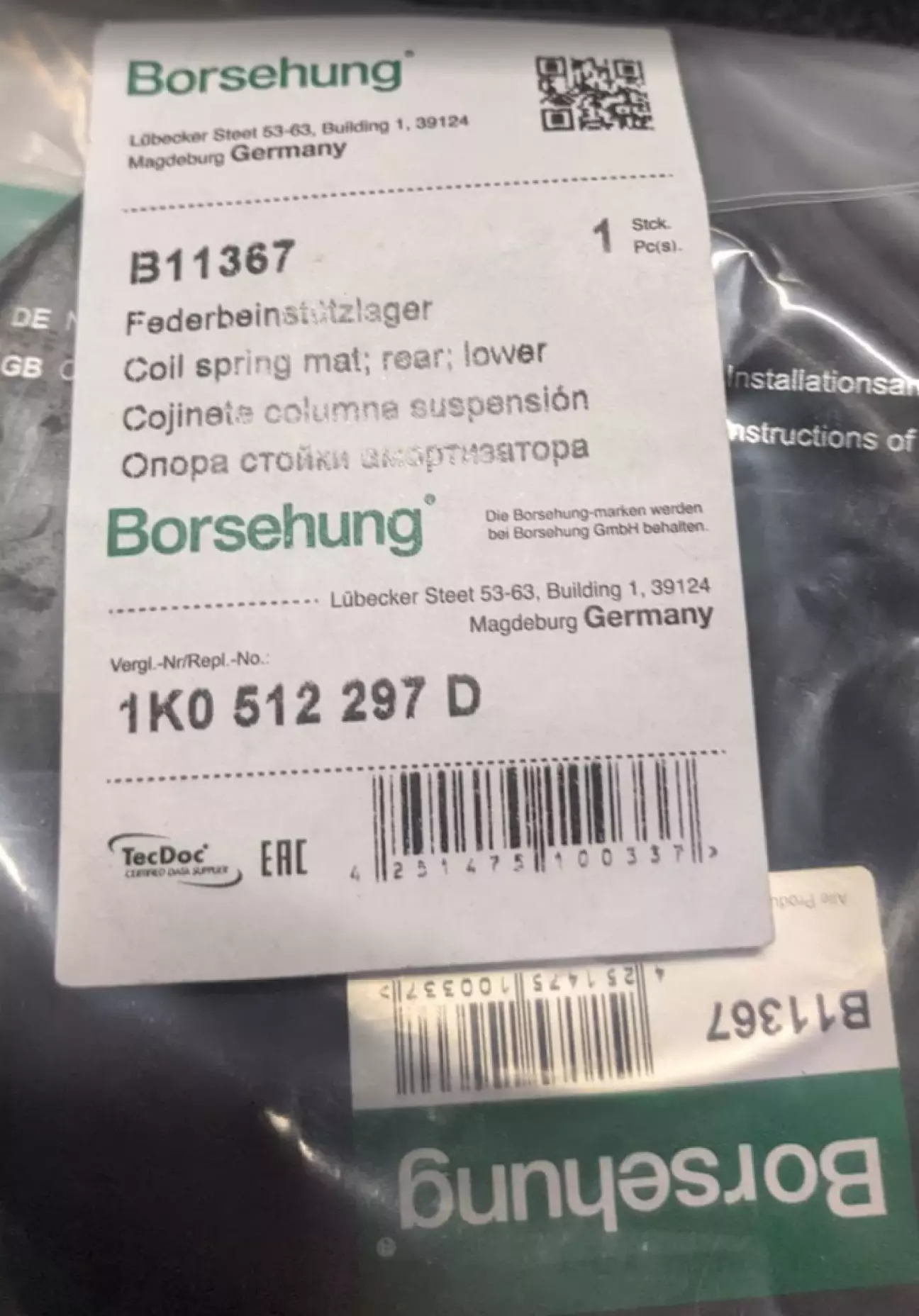 -- Опори та підкладки задніх пружин: по 2 шт. Borsehung B11367+B11365 (VAG 1K0 512 149 B+VAG 1K0 512 297 D) = 579 грн
