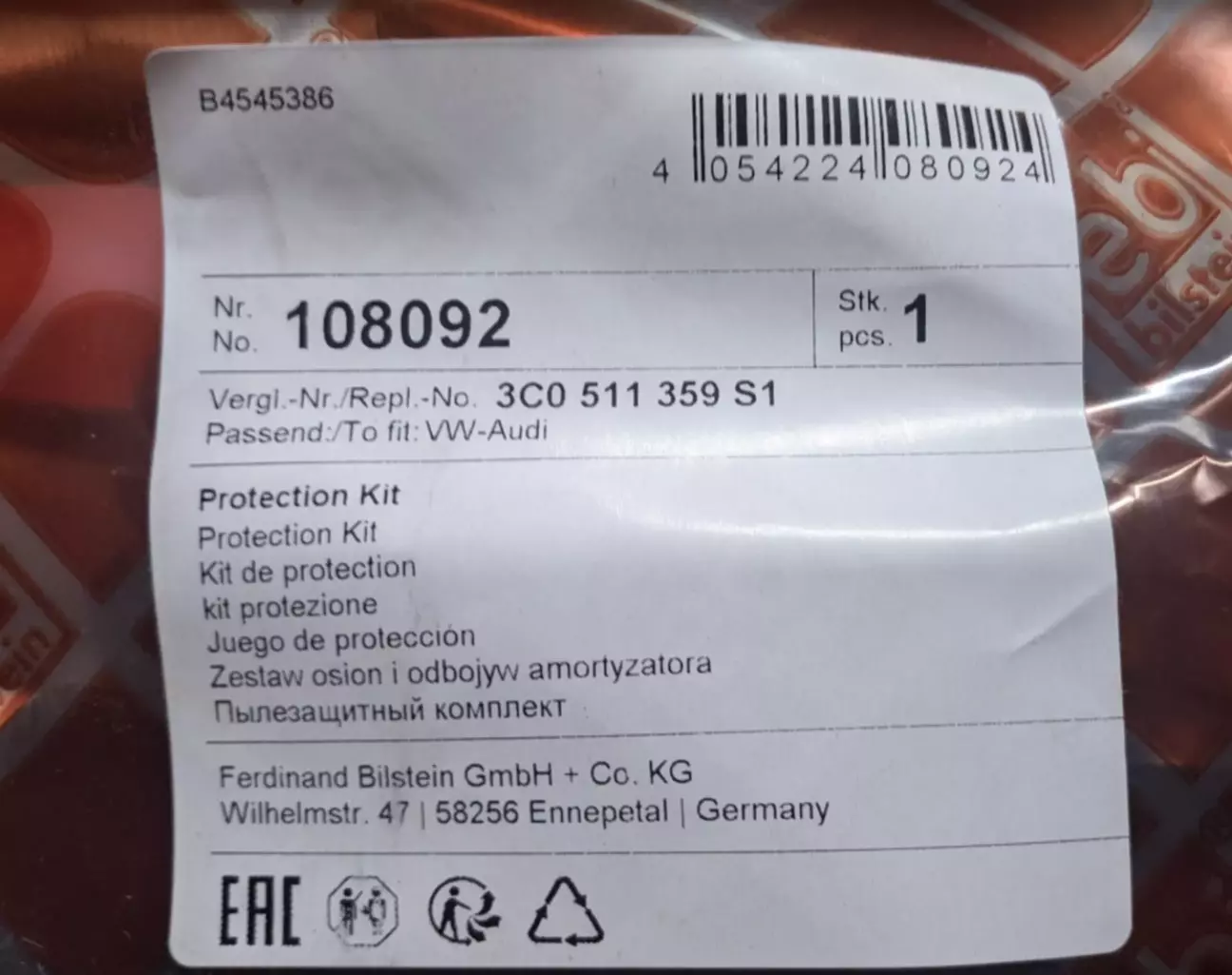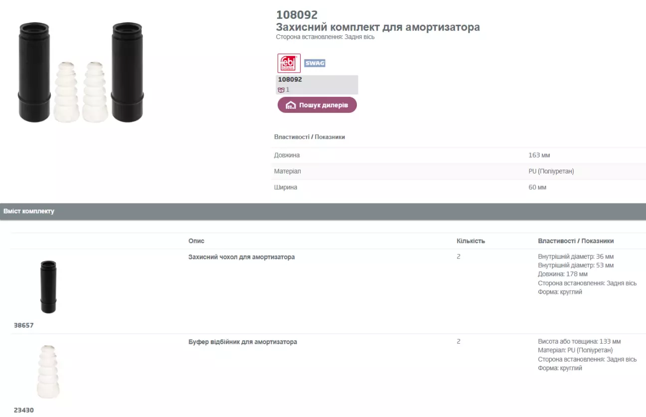 -- Комплект пильник та відбійник: Febi 108092 = по 2 шт. Febi 38657 + Febi 23430 = 487 грн