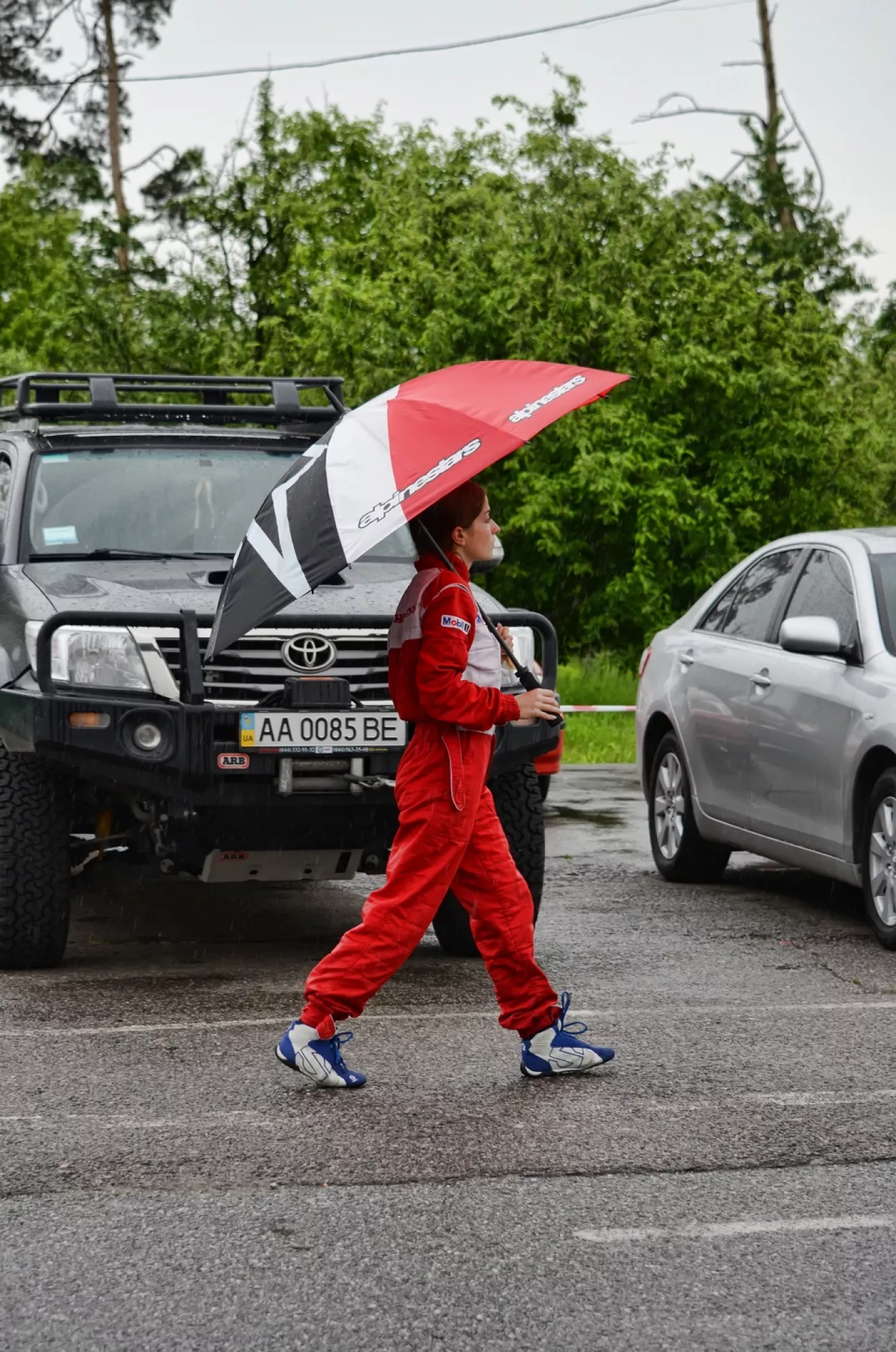 Тренировочные на гонке были по сухому, а боевые получились по мокрому, так как выпал дождь. Хотела переобуться на более лучшую резину, но из за дождя не стала. Поэтому гонку провела на federal RSR. Монстрики ехали на в основном слике, и большому счету на второй боевой можно было одевать другую резину, хотя было и влажно. Универсальная гонка получилась по покрытию :. Было все:).