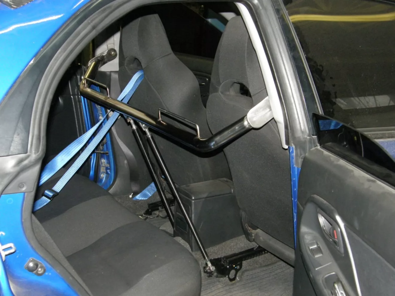 Тот кто не знает, это внутрисалонная распорка между передними стойками, к которой крепятся спортивные ремни. Изготавливал Вова АТ Ралли с напарником, из нержавейки, крепко и красиво. Вес получился 4 кг. С такой распоркой кузов играет намного меньше, и по правильному прицеплены ремни ( на фото ремни еще не прицепили).