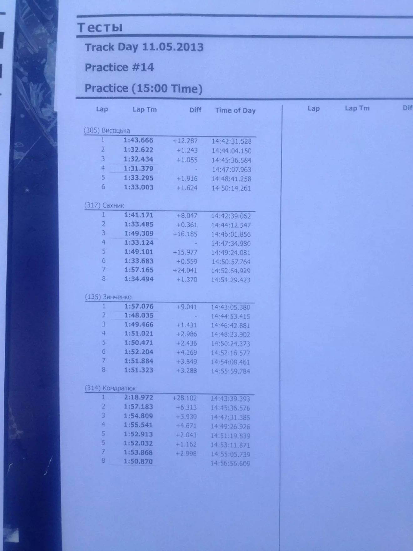 А, еще! То лучшее время, которое я показала на тренировке, я установила на треке когда уперлась в 2 другие тачки, и совершила 2 обгона. Это меня обнадеживает:)