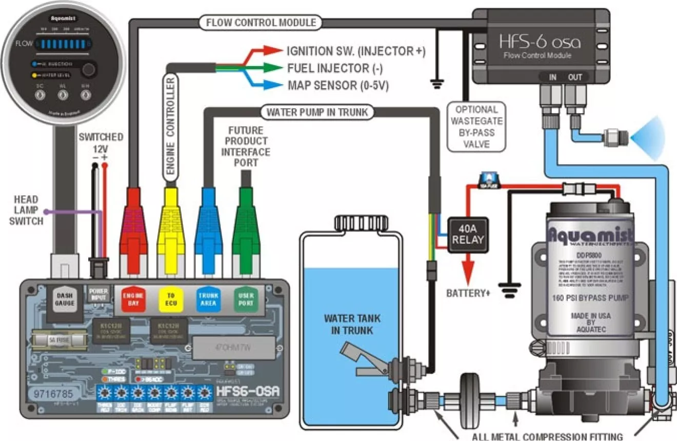 Кроме того в комплекте HFS-6 используется самый лучший сенсор объема впрыска, который производится непосредствено компанией Aquamist. Данный сенсор поддерживает любую смесь и концентрацию воды и метанола. Данный сенсор разрабатывается и модернизируется компанией уже очень давно.