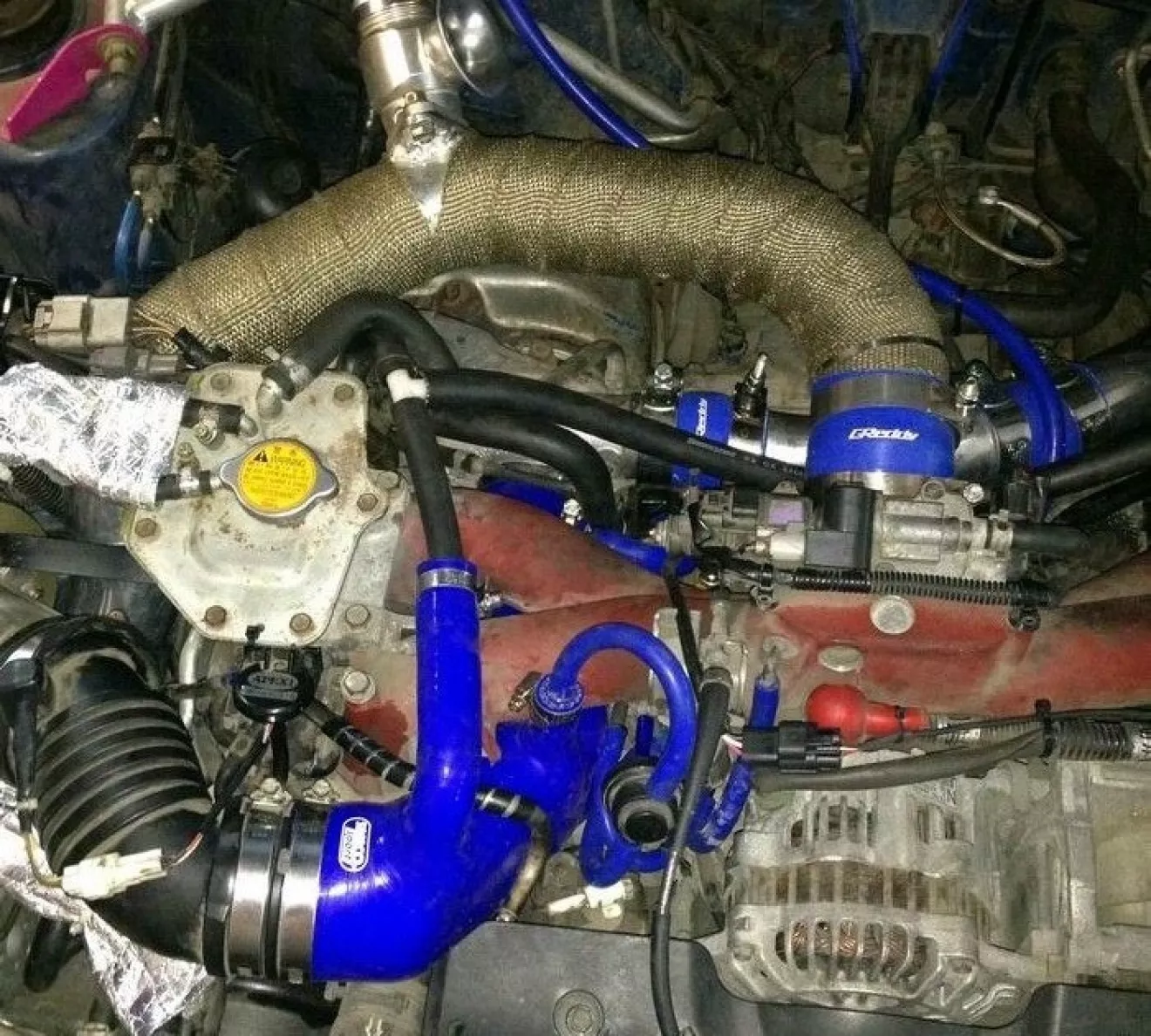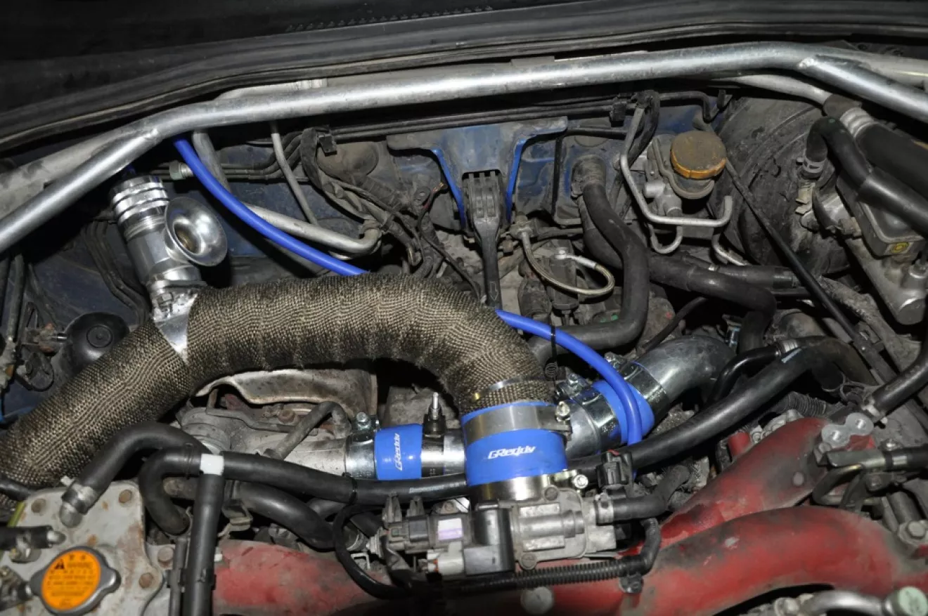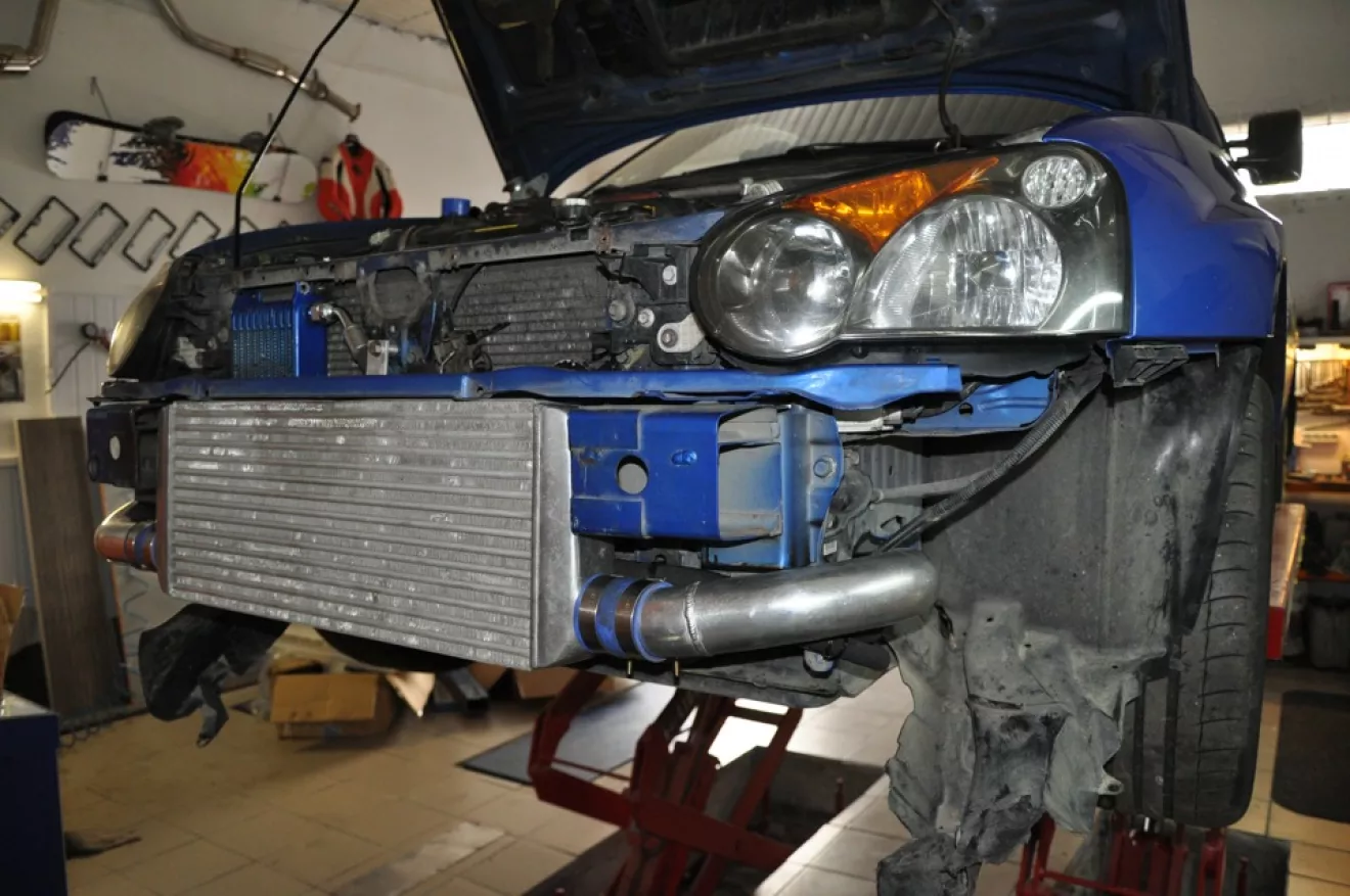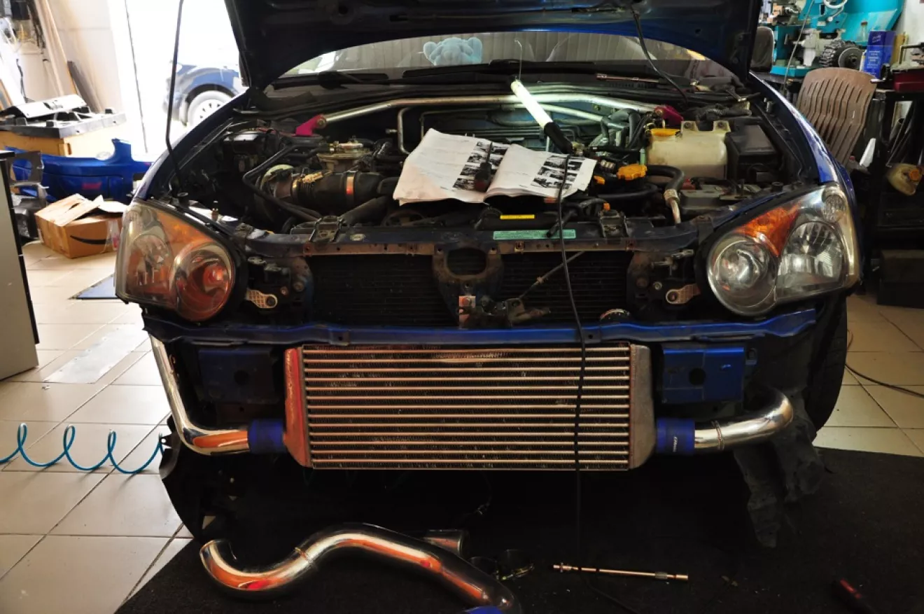 1. Установили комплект фронтального интеркулера Greddy с алюминиевыми трубами, силиконовыми патрубками и т-болт хомутами.
