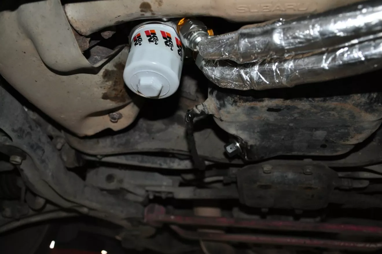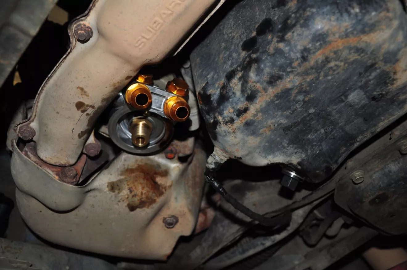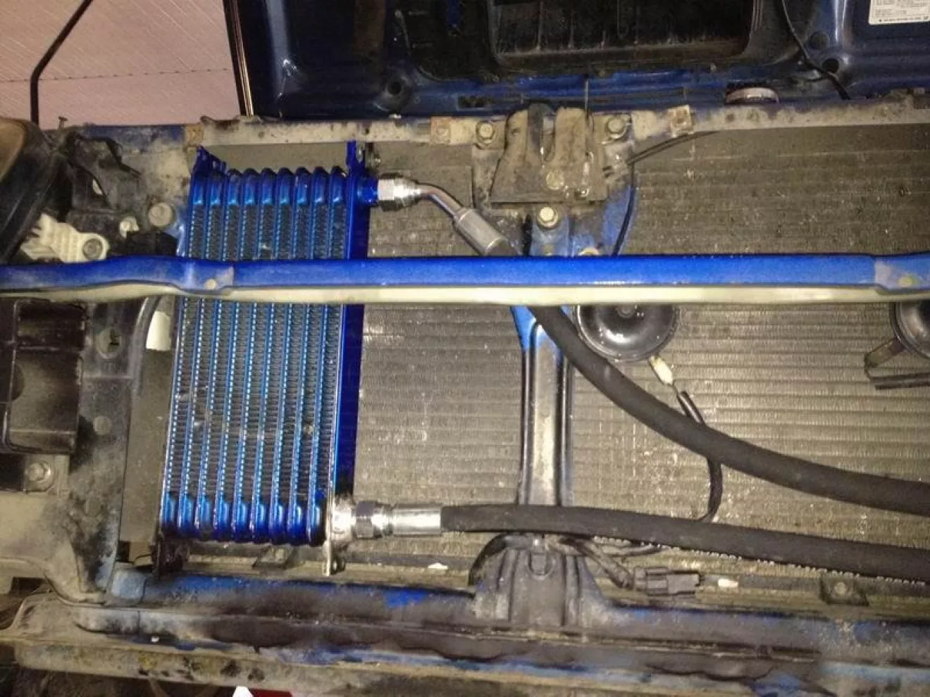 К нему был установлен сендвич маслокуллера с термостатом Greddy Grex + маслофильтр K&N.