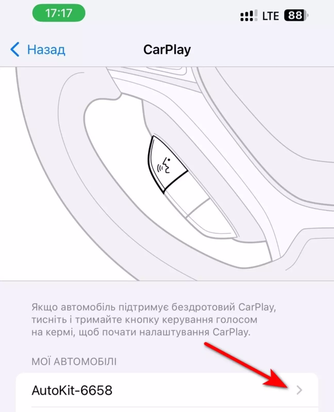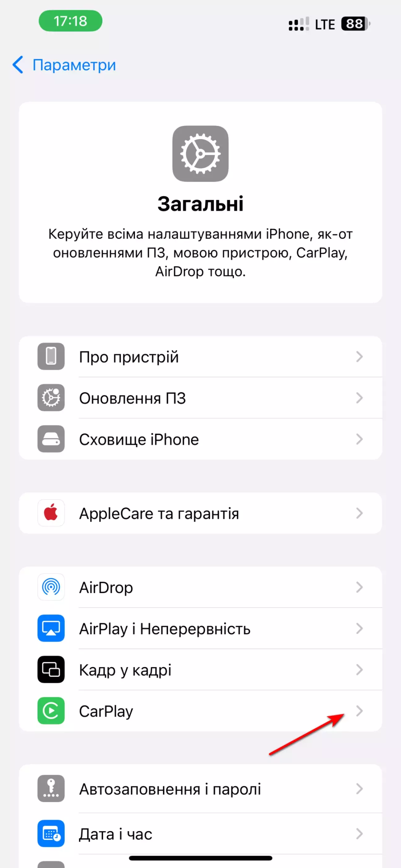 і він після установки запросить під’єднати пристрій CarPlay в гніздо USB. В телефоні вмикаємо дозвіл на використання CarPlay.