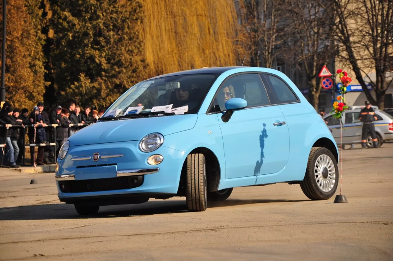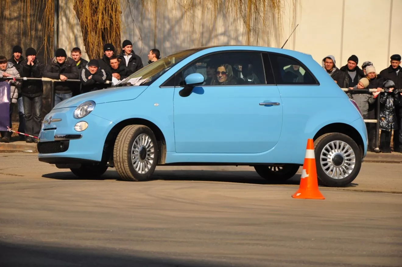 Так как, одним из спонсоров выступал фиат салон, мне доверели протестировать фиат 500, проехав слаломною трасу.